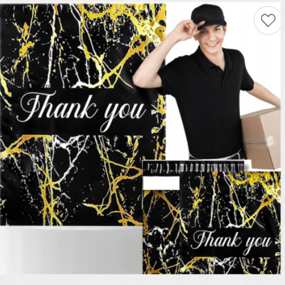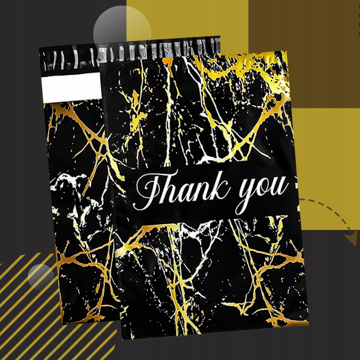 Zapewnij bezpieczne i wytrzymałe opakowanie wraz z podziękowaniem w formie nadruku Thank You oraz unikalnym wzorem Czarny Złoty Marmur!