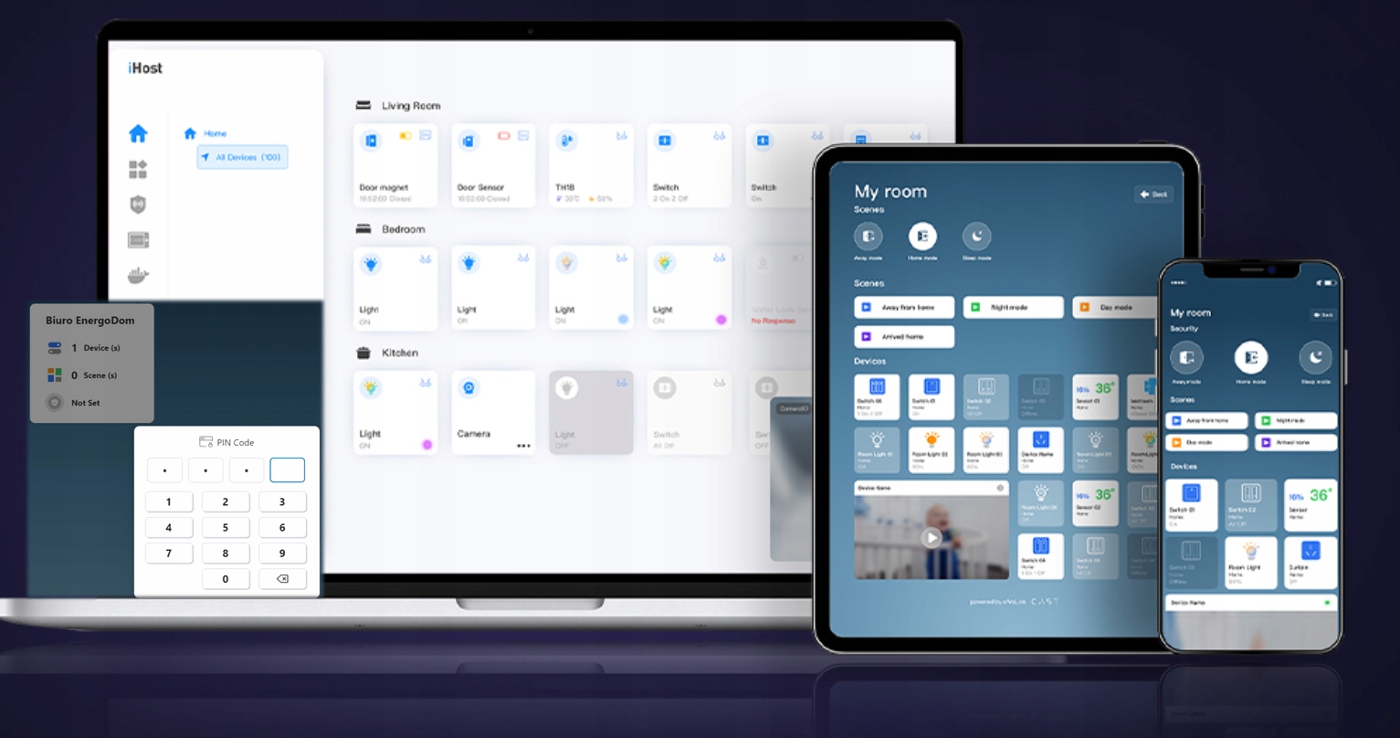 Przy pomocy dodatkowych bramek ZigBee lub RF433 możesz również rozbudować swój ekosystem o bateryjne czujniki ZigBee lub czujniki RF433Mhz. Przy pomocy centrali iHOST możesz również budować lokalny ekosystem bez aplikacji w chmurze.