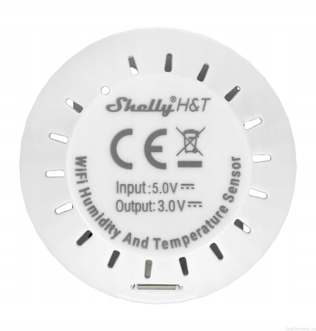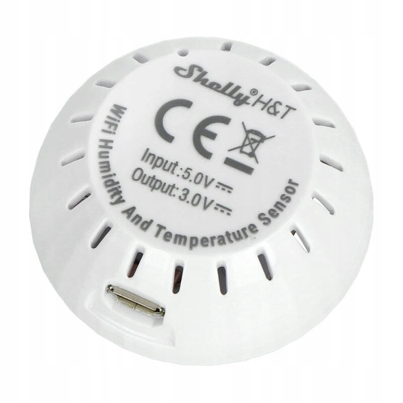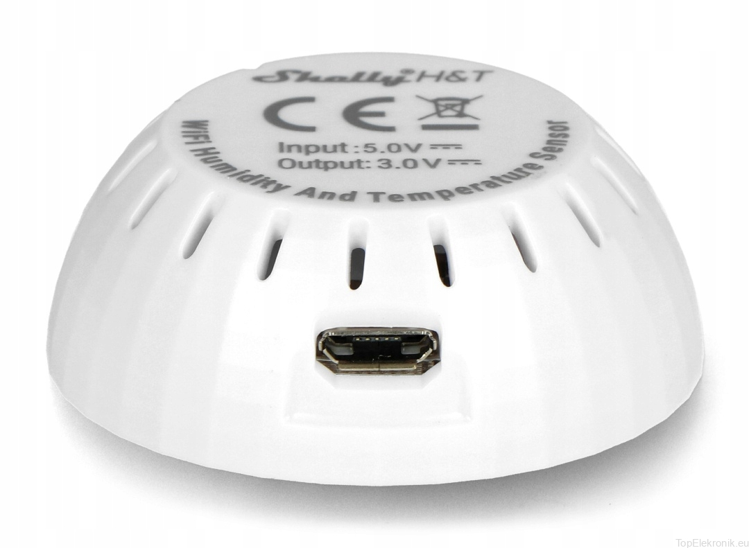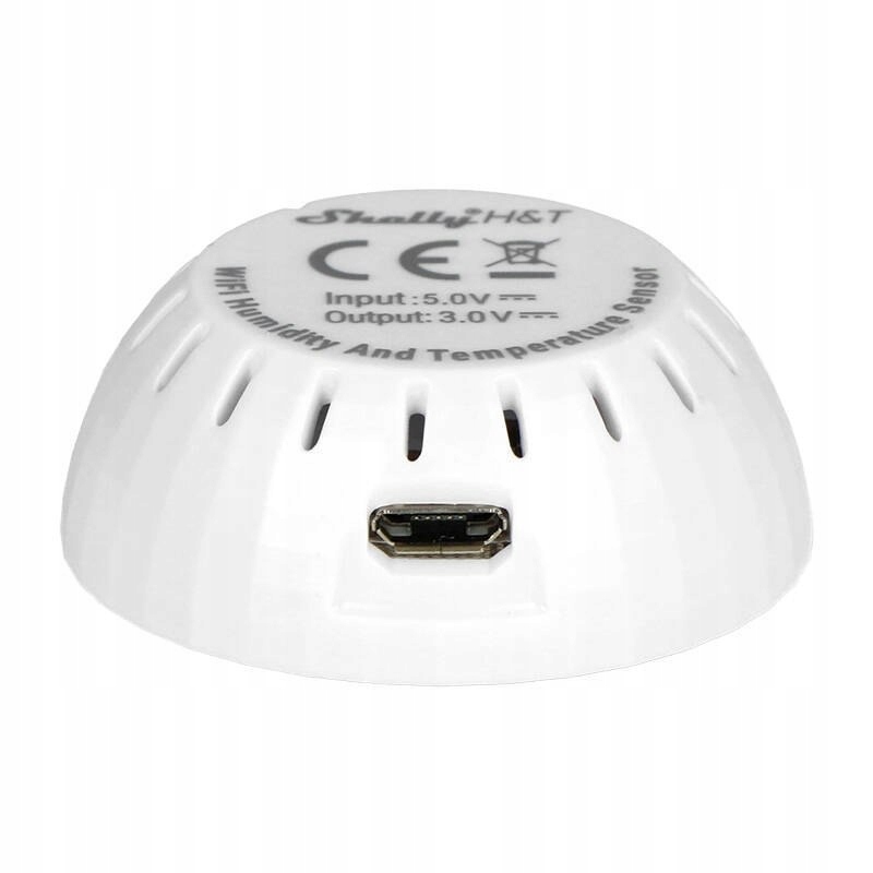 Adapter Shelly do czujnika wilgotności i temperatury umożliwia zastąpienie zasilania bateryjnego zasilaniem poprzez złącze microUSB o napięciu 5 V.