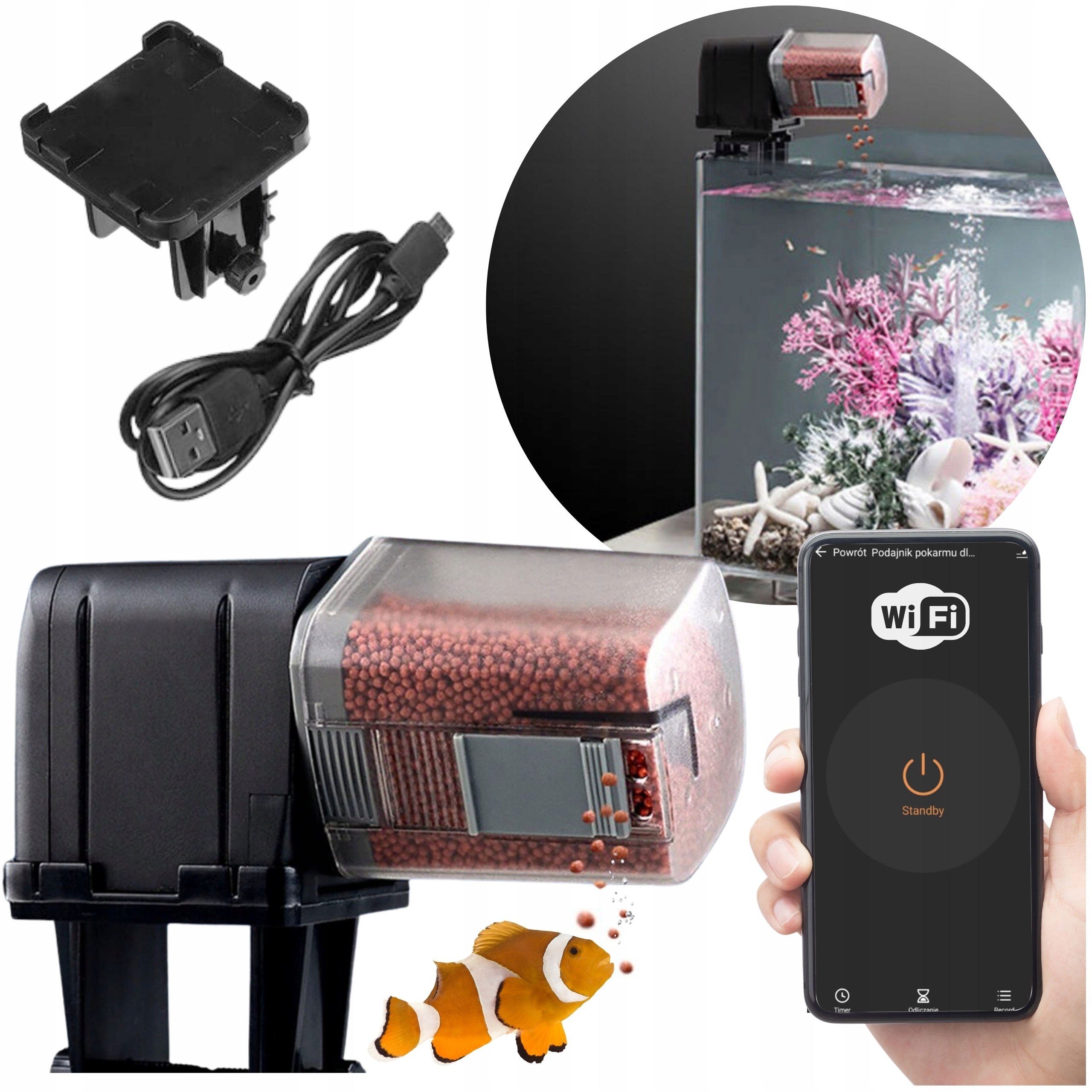 ❗NOTA: Mimo że automatyczny dozownik pokarmu jest zaprojektowany tak, aby zapewniać regularne karmienie ryb, nie zwalnia użytkownika z obowiązku okresowej kontroli jego działania.