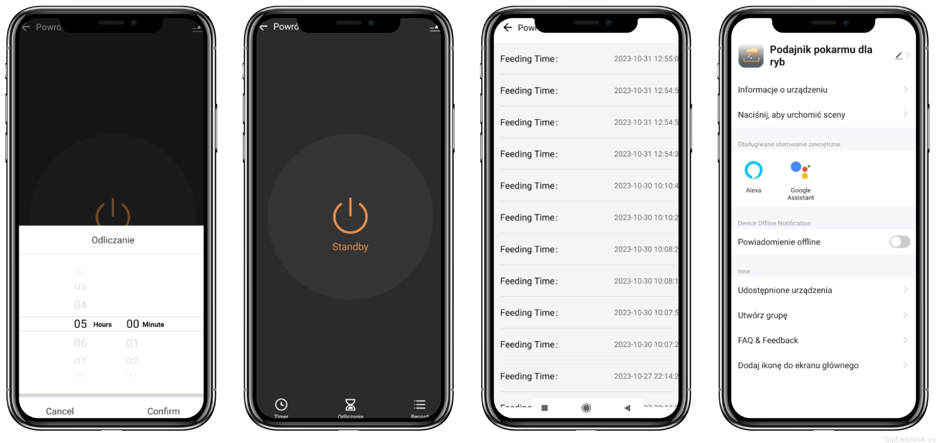 Możliwość ustawienia konkretnej ilości i czasu karmienia.