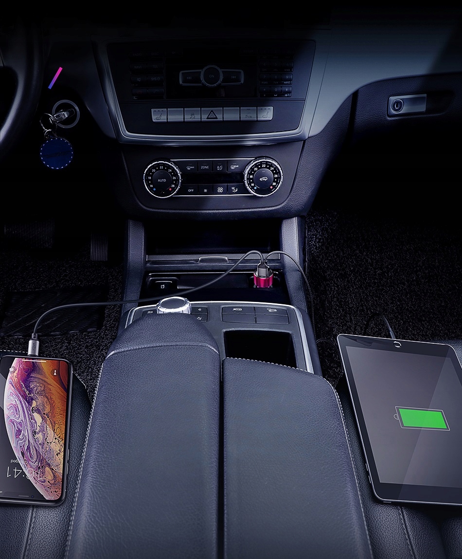 Inteligentna ładowarka samochodowa, która dostosowuje moc zasilania w zależności od ładowanego urządzenia. Umożliwia bezpieczne ładowanie, bez obaw o uszkodzenie sprzętu. Wysoka jakość wykonania i układów elektronicznych.