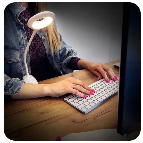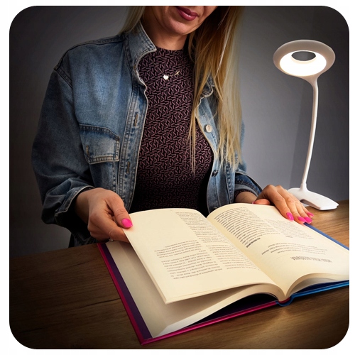 Perfekcyjna do wygodnego czytania! Lampka jest źródłem miękkiego, rozproszonego światła, które możesz rozjaśnić wedle własnych potrzeb. Lampka ma wbudowane diody LED imitujące naturalną barwę światła. Możesz ją dowolnie ustawić – ma giętkie ramię, które obraca się o 360 stopni. To lekki i przenośny gadżet, idealny do zabrania w podróż.