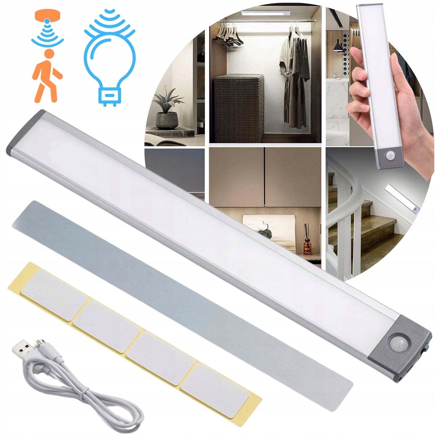 ✅ Komplet zawiera: lampkę, kabel USB, metalową listwę, taśmę dwustronną