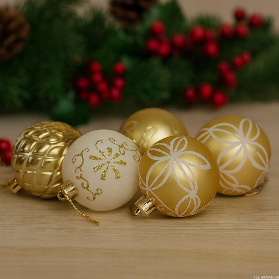 Różnorodność wzorów i klasyczna kolorystyka sprawiają, że bombki pasują zarówno do tradycyjnych, jak i nowoczesnych aranżacji świątecznych.