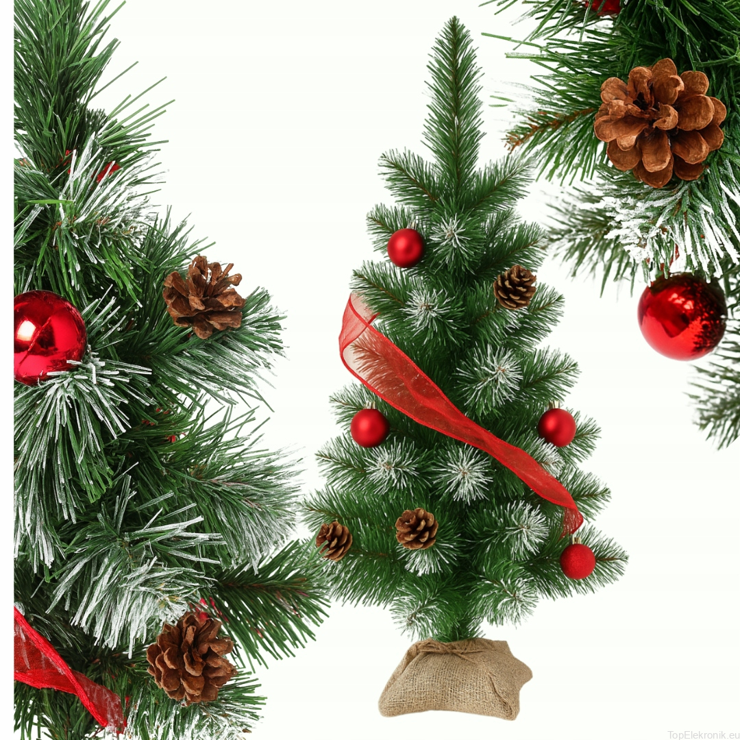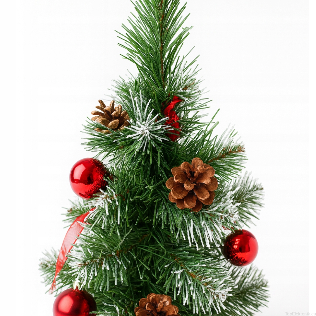 Nasza choinka daje Ci pełną swobodę aranżacji – rozłóż ją według swoich marzeń i ozdób ją tak, jak lubisz. Jest niezwykle gęsta, pokryta delikatnym sztucznym śniegiem i pięknymi czerwonymi ozdobami.