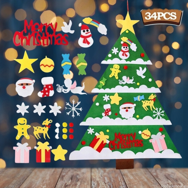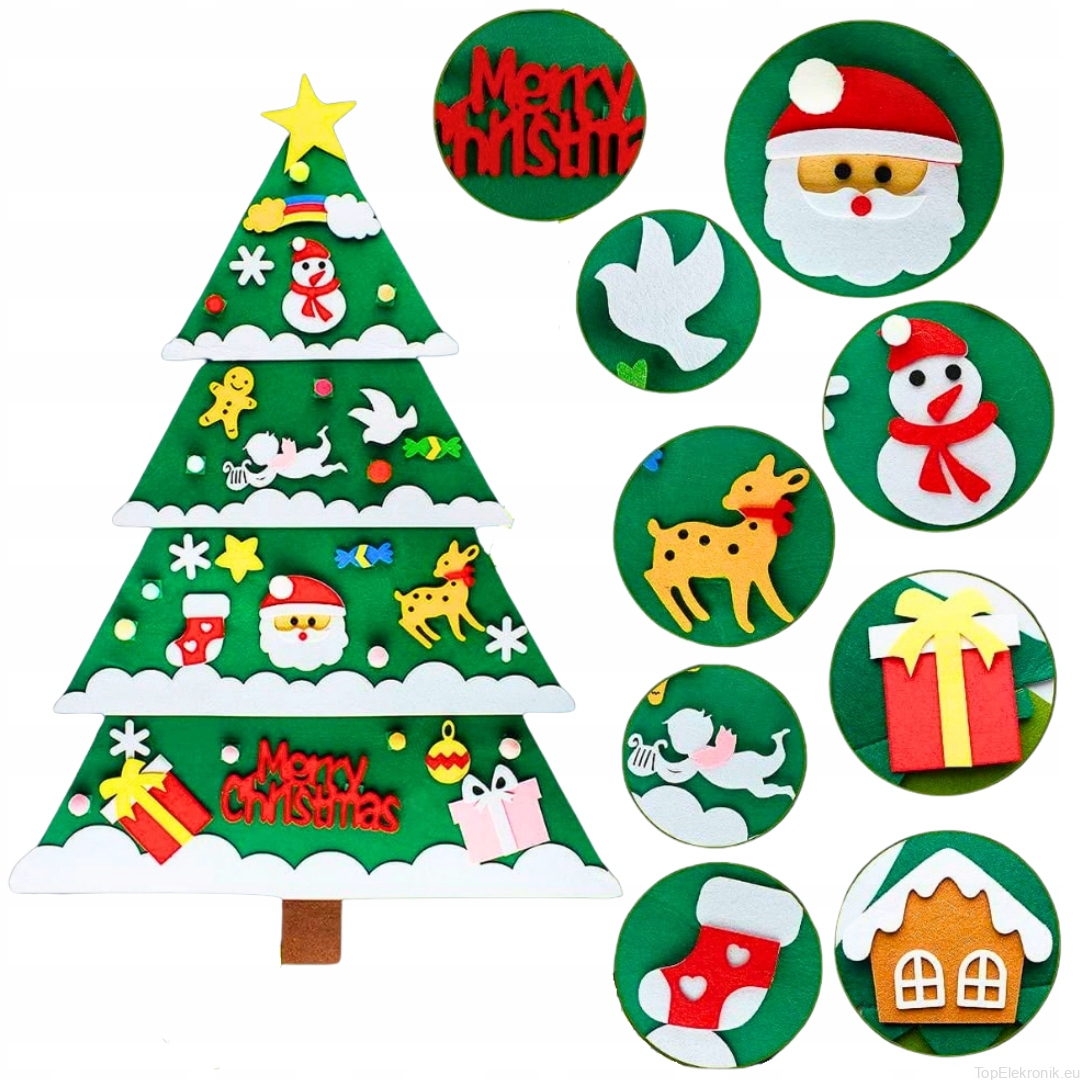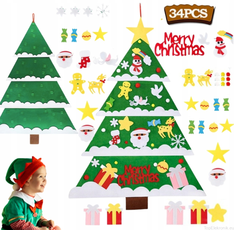 ✳️ Zestaw ozdób: 34 ozdoby, takich jak bombki, gwiazdki, bałwanki, prezenty itp., które dzieci mogą dowolnie przyczepiać i odczepiać.