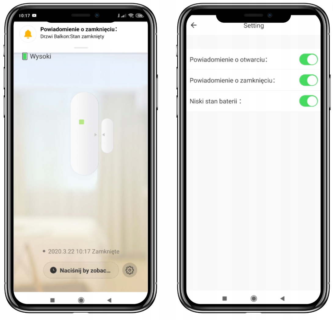 Po wyjściu z domu gdy okno lub drzwi zostaną otwarte otrzymasz powiadomienie na telefon o nieprawidłowości. Jeżeli w komplecie masz także syrenę alarmową TUYA z naszej oferty to ona zacznie alarmować domowników o zmianie stanu okna, drzwi.