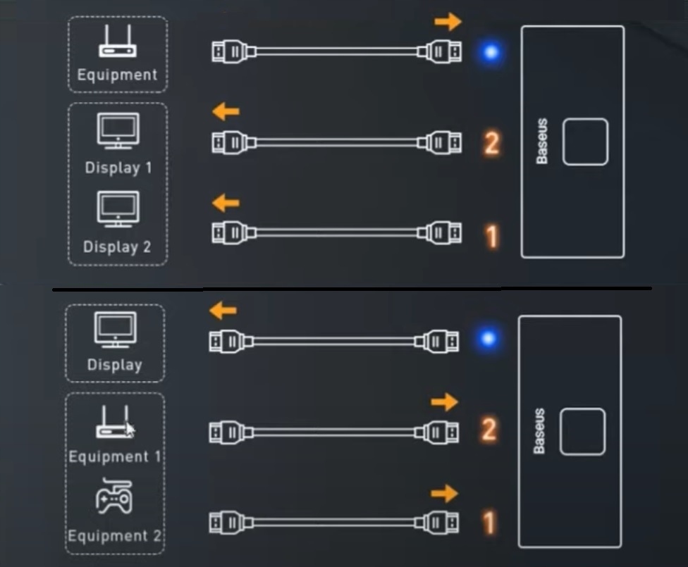 Dzięki adapterowi HDMI firmy Baseus możesz już zapomnieć o ciągłym przełączaniu kabli HDMI, aby przełączać się pomiędzy odbiornikami lub konsolami na telewizorze. Możesz podłączyć swoje urządzenia do jednego miejsca i wygodnie przełączać się pomiędzy nimi.