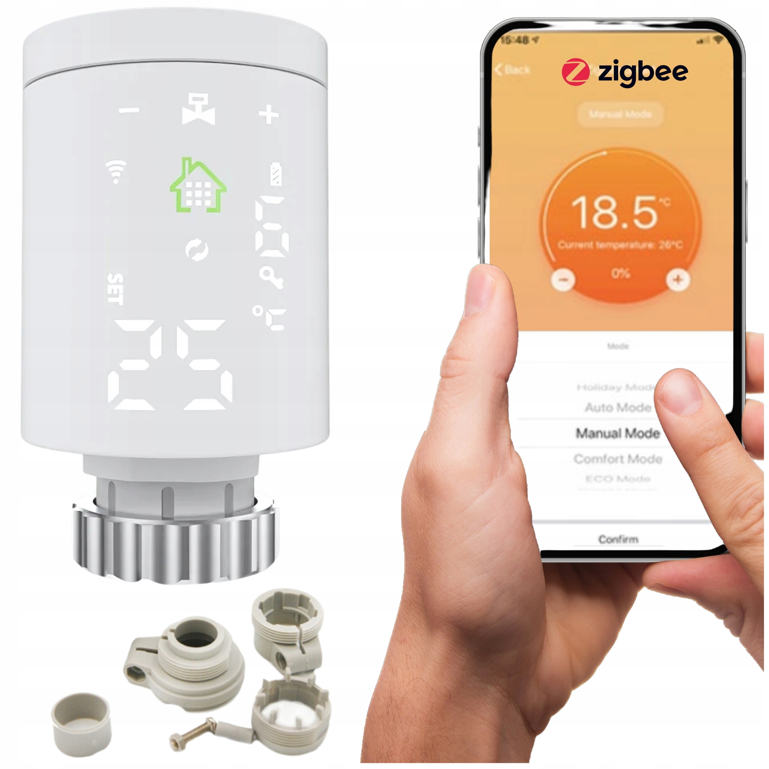 ⏩ Możliwa praca bez aplikacji: Wszystkie ustawienia głowicy można również wprowadzić manualnie - praca automatyczna