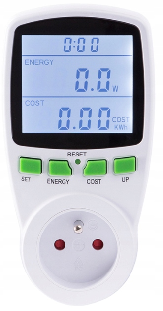 Produkt posiada duży, czytelny wyświetlacz, który pozwoli na odczytanie dokładnych danych, takich jak: napięcie, prąd, częstotliwość, moc, moc minimalna, moc maksymalna, prąd, pobrana energia oraz koszty zużycia (należy je ustawić wcześniej - ręcznie).