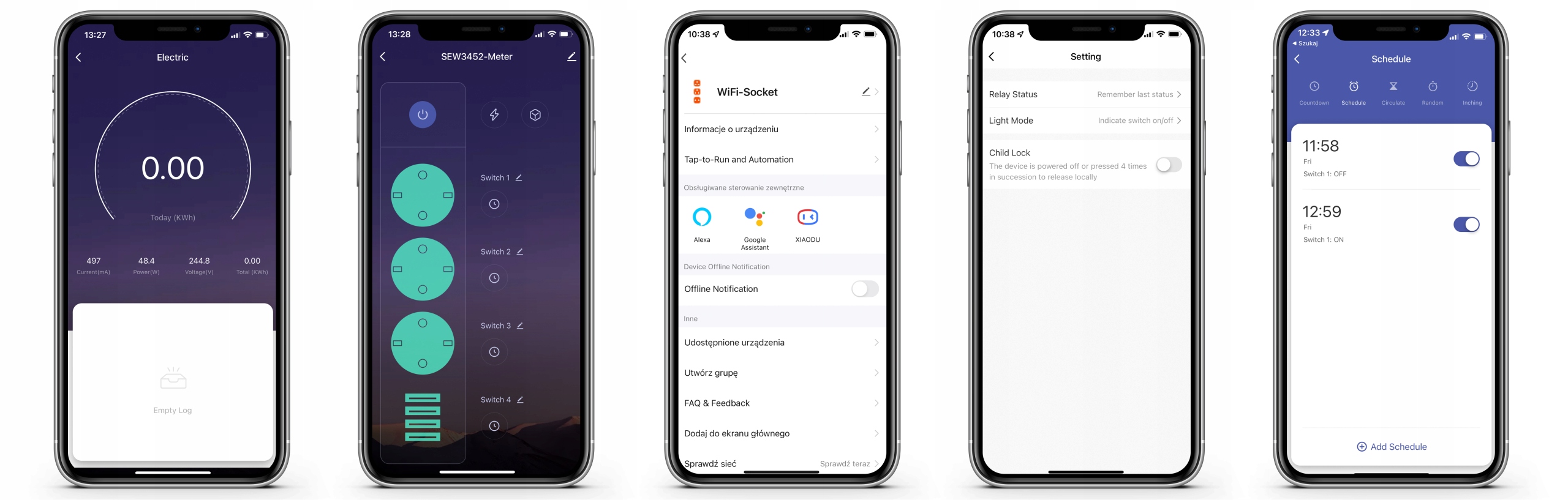 Umożliwia zdalną kontrolę za pomocą specjalnej aplikacji, co pozwoli ustawić porę rozpoczęcia i zakończenia pracy wybranego urządzenia. Możesz też zaplanować przypomnienie, dzięki któremu nie zapomnisz odłączyć wybranego sprzętu.