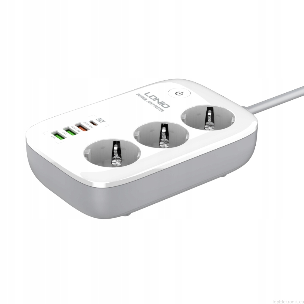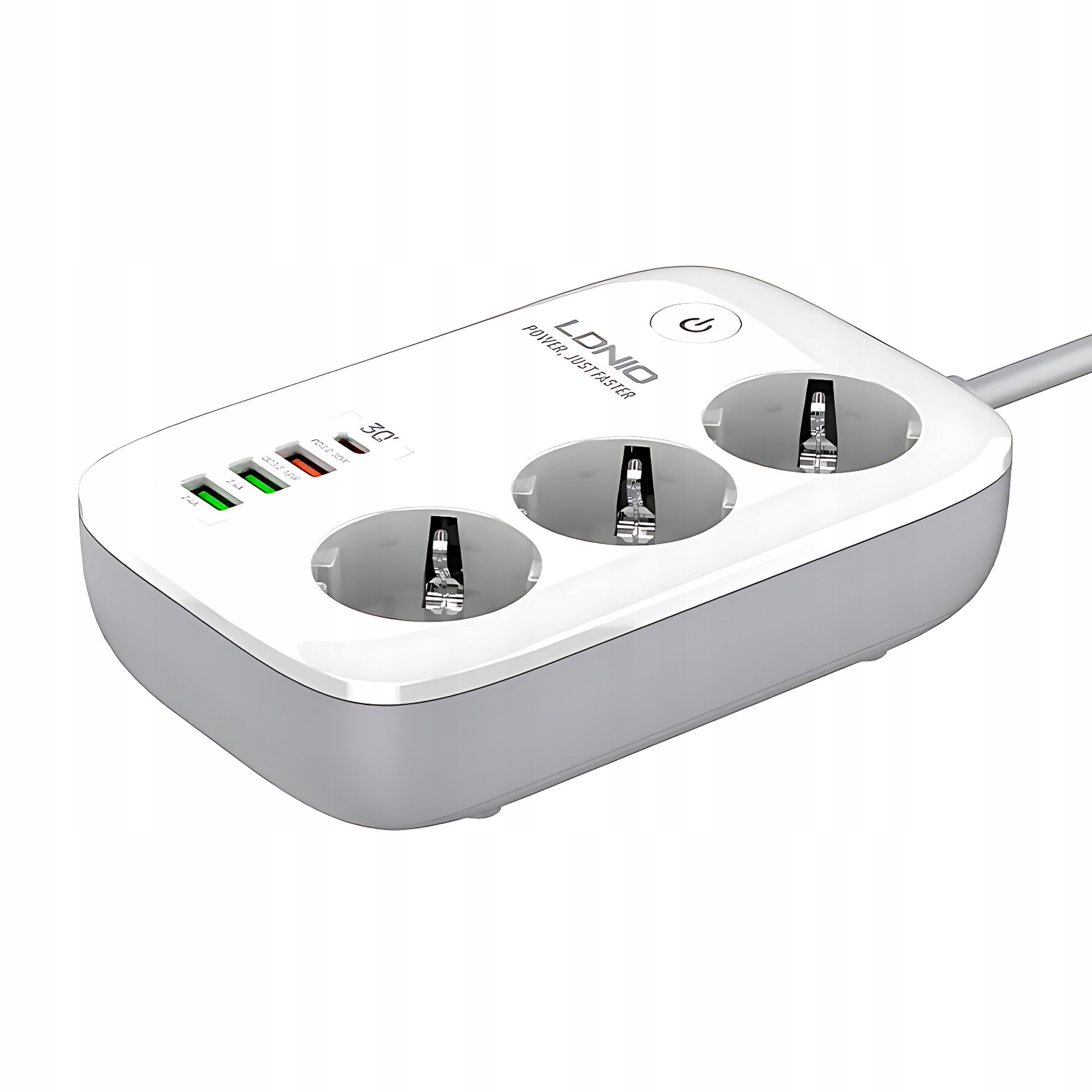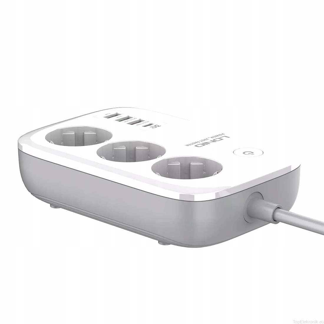 Inteligentna listwa zasilająca Wi-Fi LDNIO SEW3452 została wyposażona w 3 gniazda oraz 4 porty USB, które wyróżniają się szeroką kompatybilnością i pozwolą wygodnie ładować potrzebne urządzenia.
