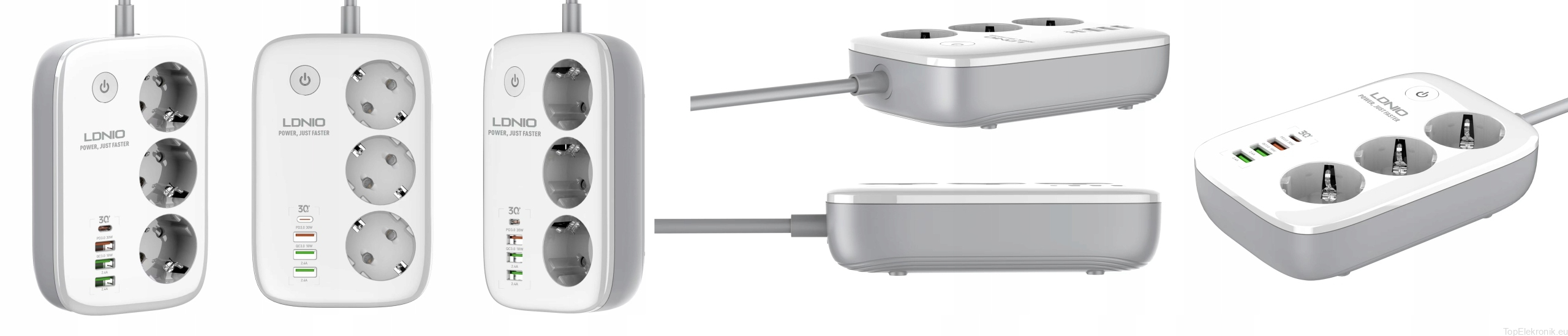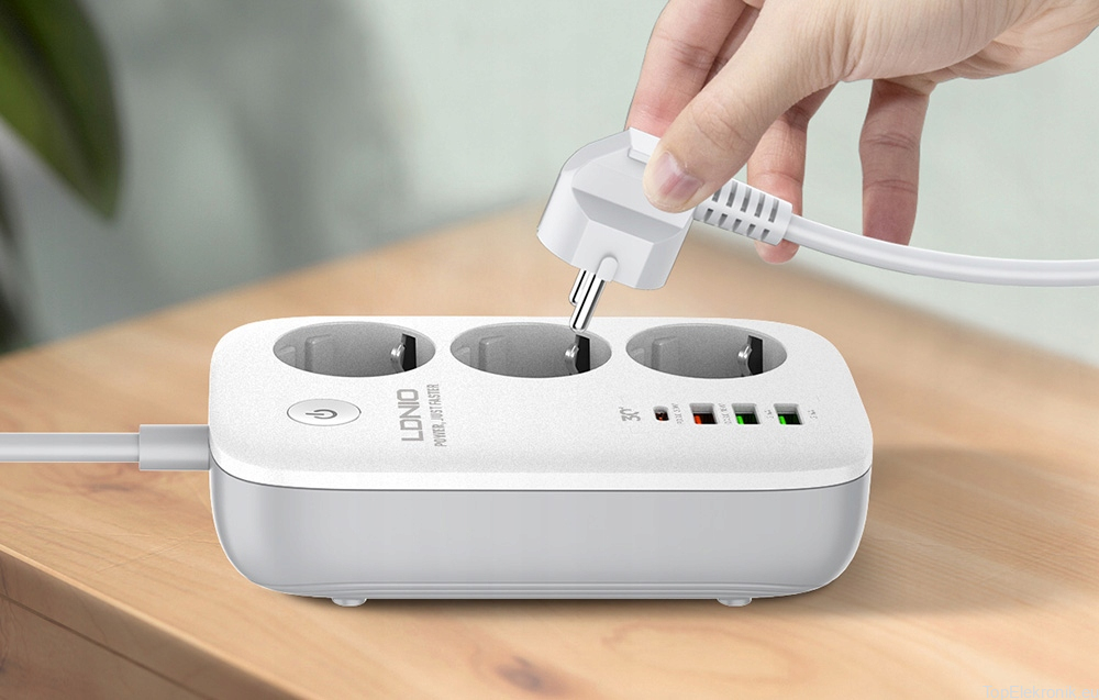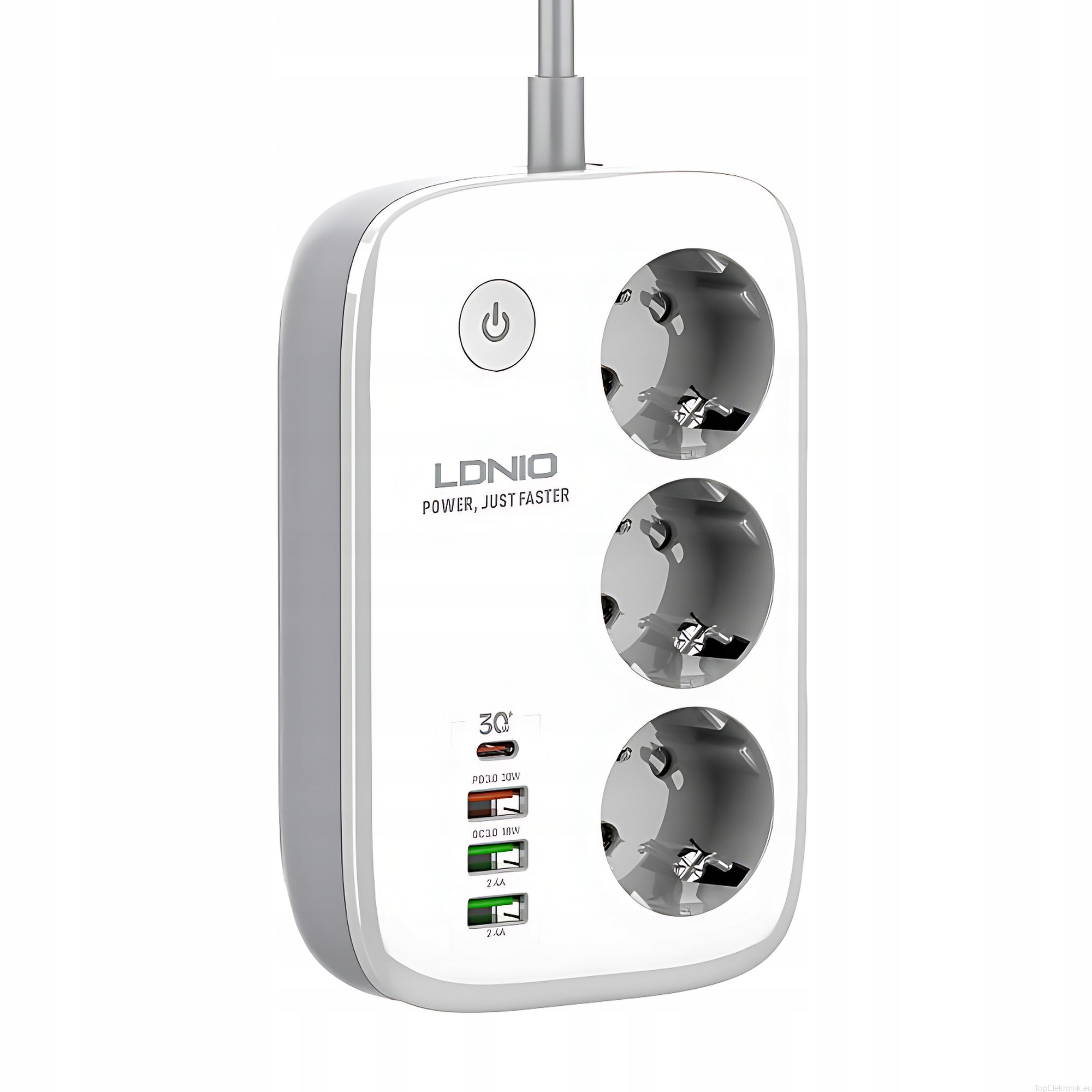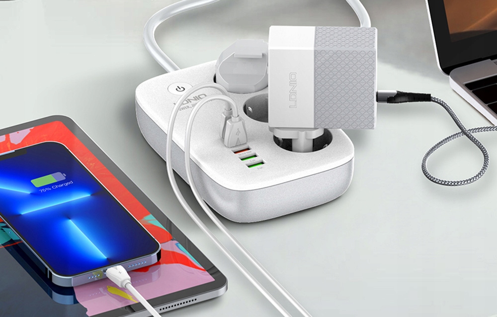 Inteligentna listwa zasilająca Wi-Fi LDNIO SEW3452 została wyposażona w 3 gniazda oraz 4 porty USB, które wyróżniają się szeroką kompatybilnością i pozwolą wygodnie ładować potrzebne urządzenia.