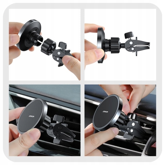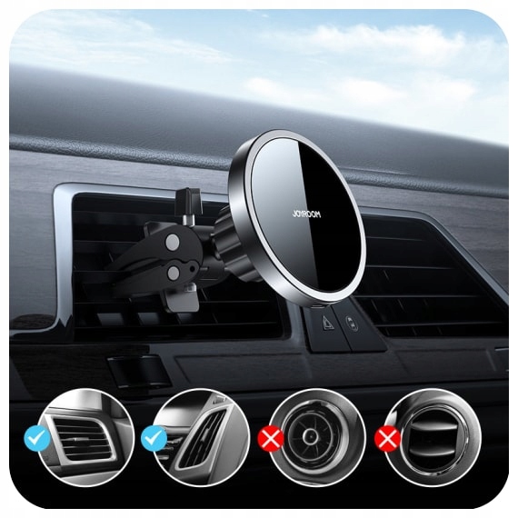 Uchwyt samochodowy Joyroom JR-ZS240 z opcją ładowania bezprzewodowego MagSafe to gadżet, który doceni każdy kierowca. Jego uniwersalna konstrukcja sprawia, że pasuje do większości kratek nawiewu w różnych pojazdach, co przekłada się na wyjątkowo prosty montaż. Możliwość obrotu o 360° zapewnia natomiast idealne ustawienie położenia telefonu do potrzeb użytkownika. Uchwyt idealnie sprawdza się w przypadku urządzeń Apple, które mają funkcję bezprzewodową MagSafe. Wystarczy jednak zaopatrzyć się w specjalne etui z wbudowanym oczkiem magnetycznych, aby w pełni korzystać z możliwości, jakie daje wyposażenie.