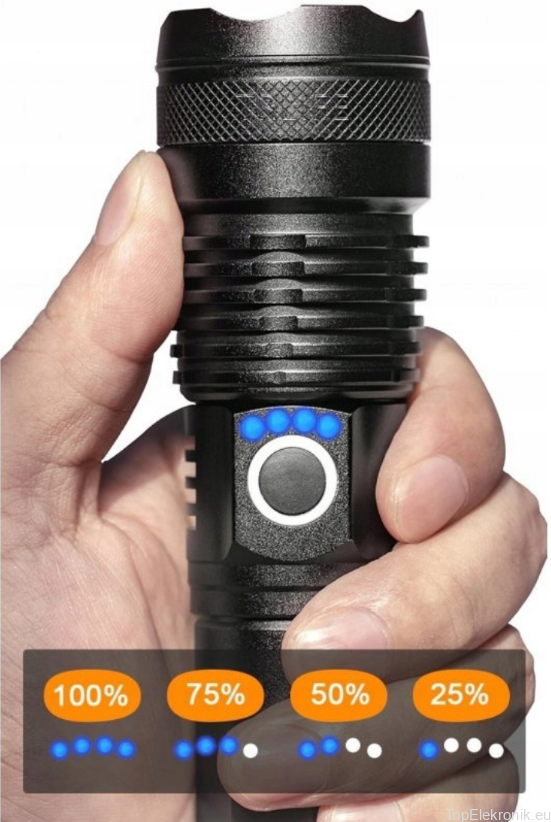 Dzięki szybkiemu ładowaniu USB-C latarka naładuje się w ciągu 3 godzin i działa do 20 godzin