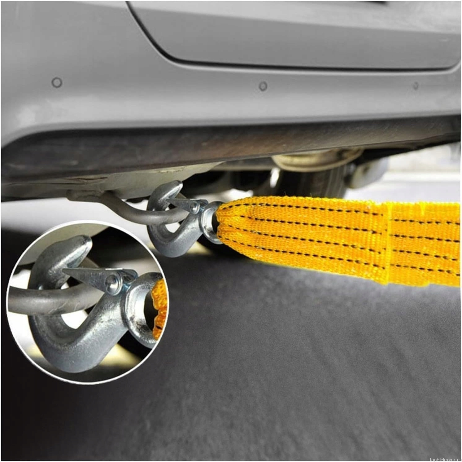 Wyposażone w szybkie zatrzaskiwane haki bezpieczeństwa po obu stronach, ten pas holowniczy można łatwo i bezpiecznie przymocować w mgnieniu oka. Haki są wyposażone w klipsy zabezpieczające, które zapewniają bezpieczne zamocowanie podczas holowania.