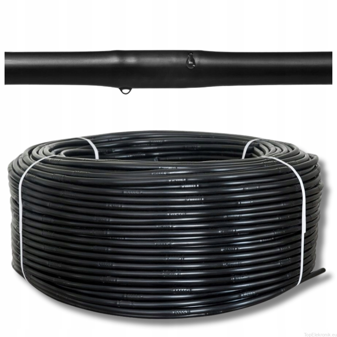 Linia kroplująca 100 m Fi16 precyzyjnie dostarcza wodę i składniki odżywcze bezpośrednio do korzeni roślin, zapewniając im idealne warunki do wzrostu.