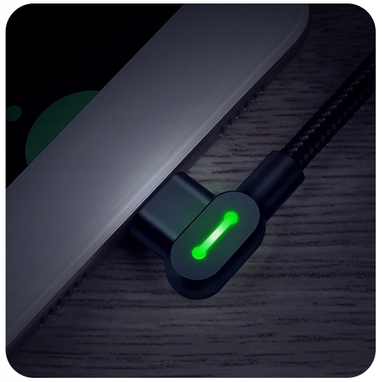 Kabel stworzony specjalnie dla graczy. Kabel został zaprojektowany tak aby zapewnić jak największy komfort ładowania w czasie używania telefonu, końcówki pod kątem 90° są idealne kiedy używamy telefonu w poziomie pozwalając całkowicie skupić się na grze lub filmie który oglądamy.