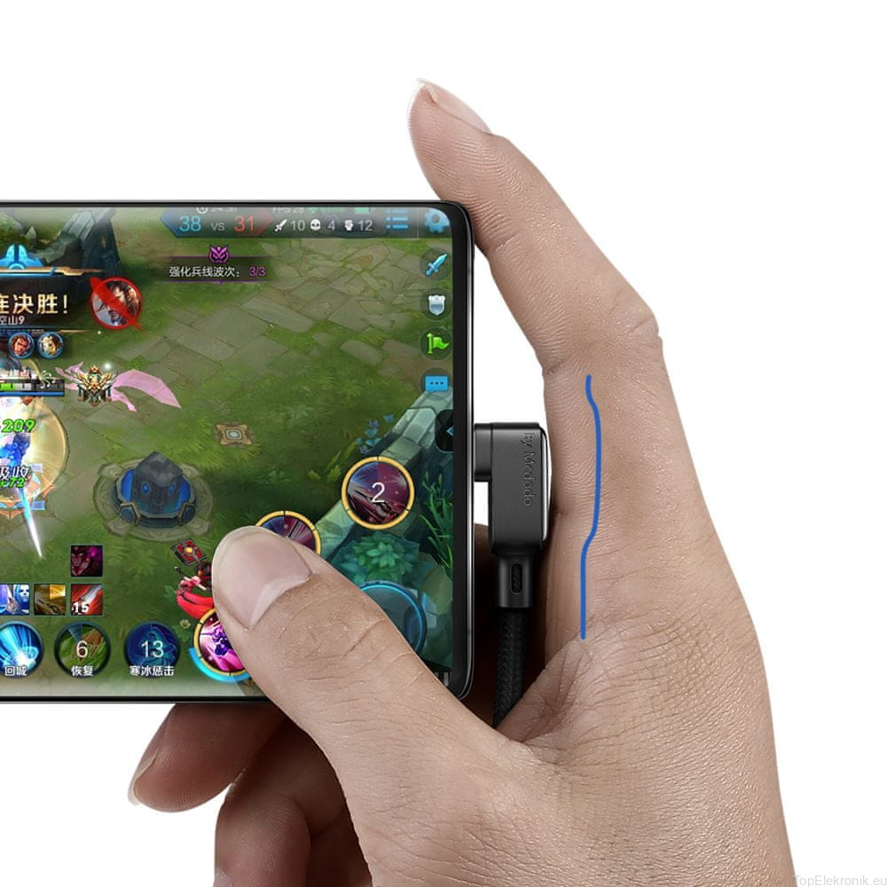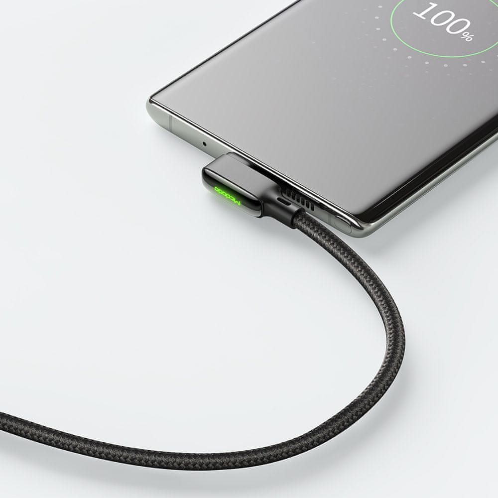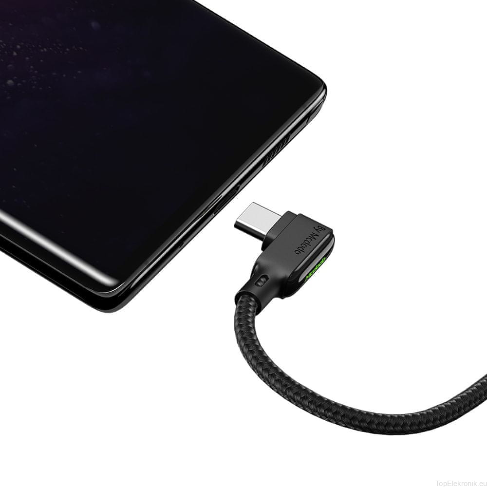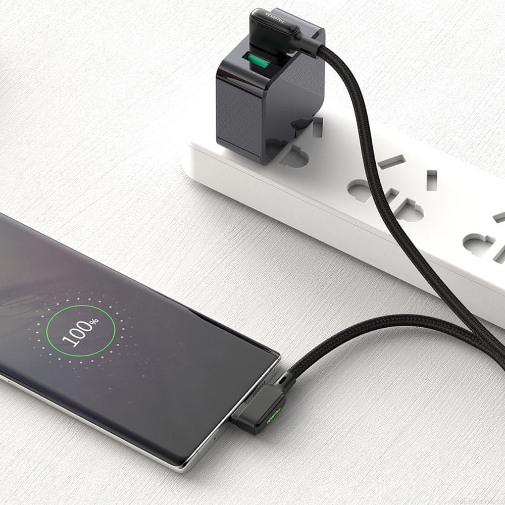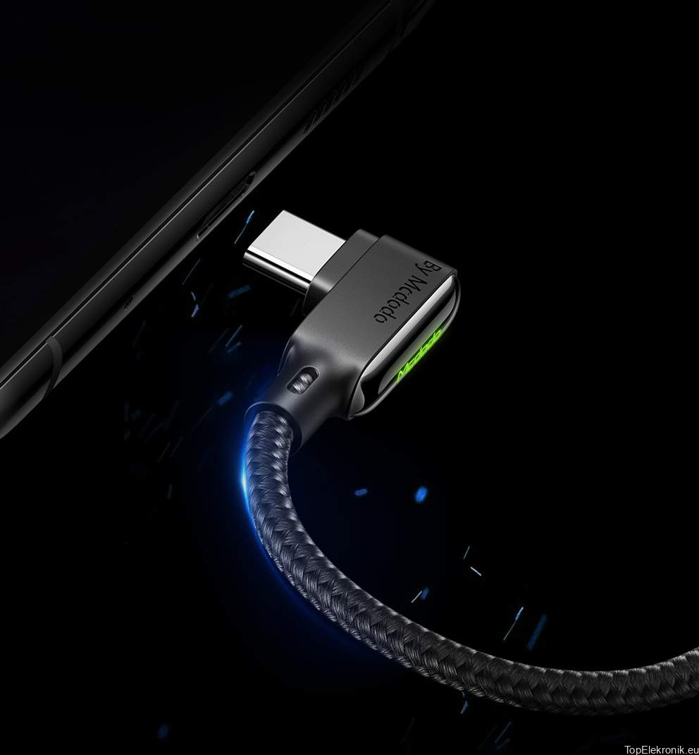 Wysokiej jakości kabel marki McDODO wyposażony w złącze USB - USB TYP-C. Idealne rozwiązanie dla wszystkich, którzy często korzystają ze smartfona podczas ładowania. Wygodna kątowa konstrukcja zapewnia komfort dla dłoni.