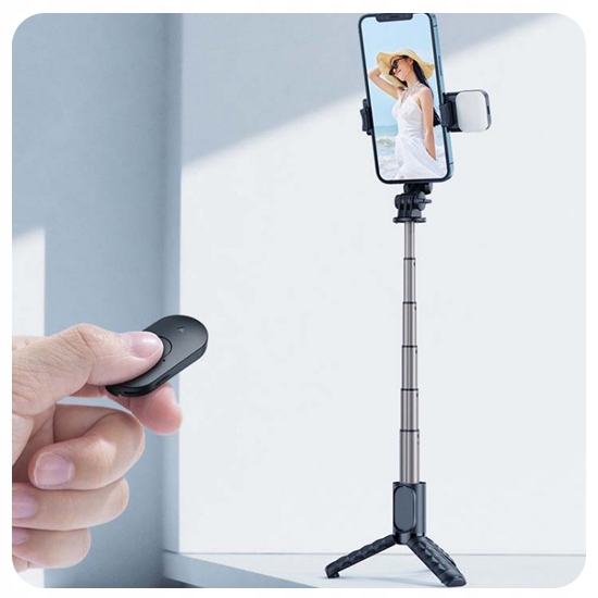 To rewelacyjny gadżet dla każdego miłośnika smartfonowej fotografii. Bezprzewodowy selfie stick oraz wbudowany statyw (tripod) i lampa w jednym. Unikalne połączenie kijka ze statywem i lampą to nie zrównany komfort i wygoda.