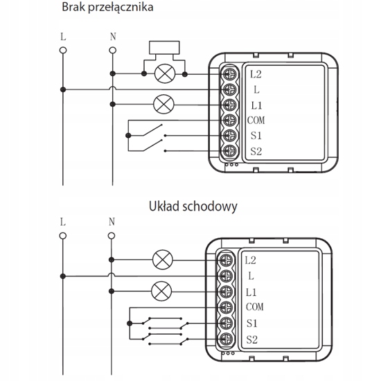 Uwaga! Urządzenia bez N służą tylko i wyłącznie do obsługi obwodów oświetleniowych, nie współdziałają z zasilaczami impulsowymi oraz transformatorami! Złe użytkowanie może skutkować uszkodzeniem urządzenia.