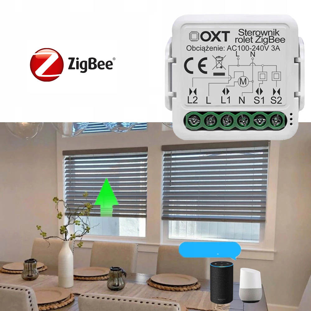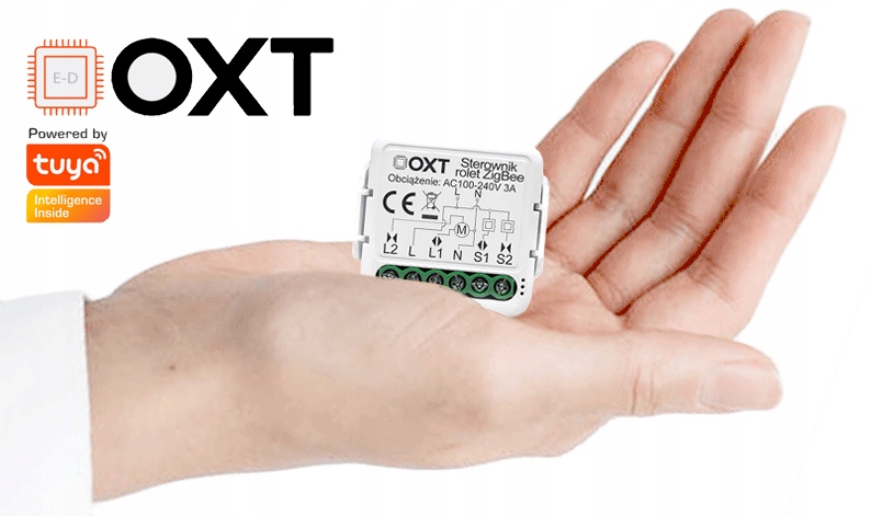 Produkt umożliwia sterowanie z aplikacji TUYA na smartfonie roletami, markizami, żaluzjami, zasłonami - wszelkimi napędami sterowanymi zasilaniem 230V.