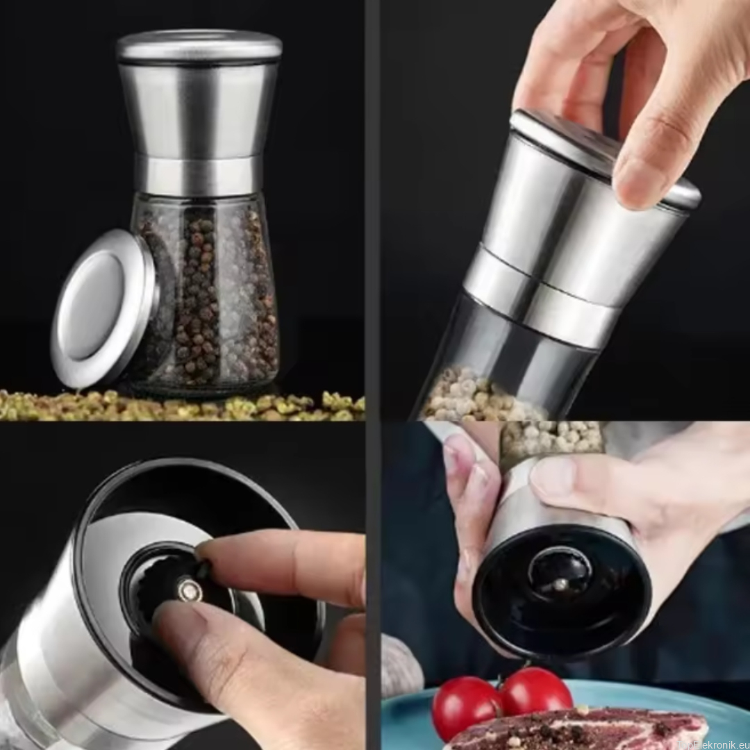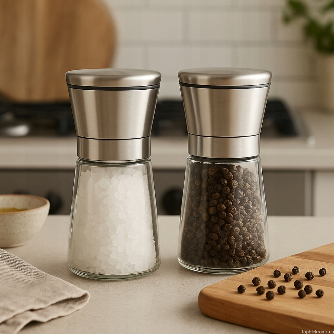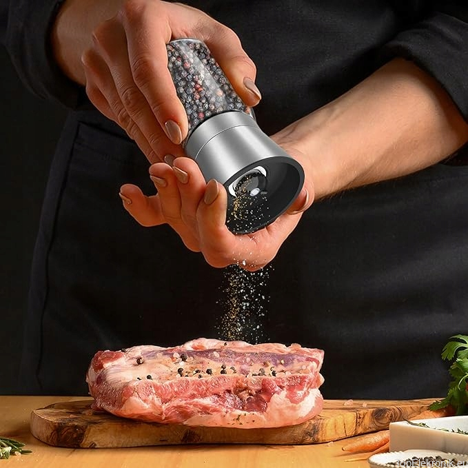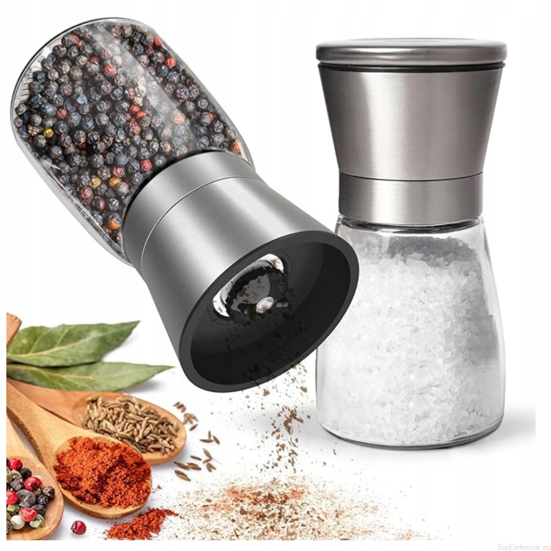 Wzbogać swoją kuchnię o elegancki i funkcjonalny zestaw młynków ręcznych do przypraw (2 sztuki), który idealnie nadaje się do mielenia pieprzu, gruboziarnistej soli morskiej oraz innych przypraw.