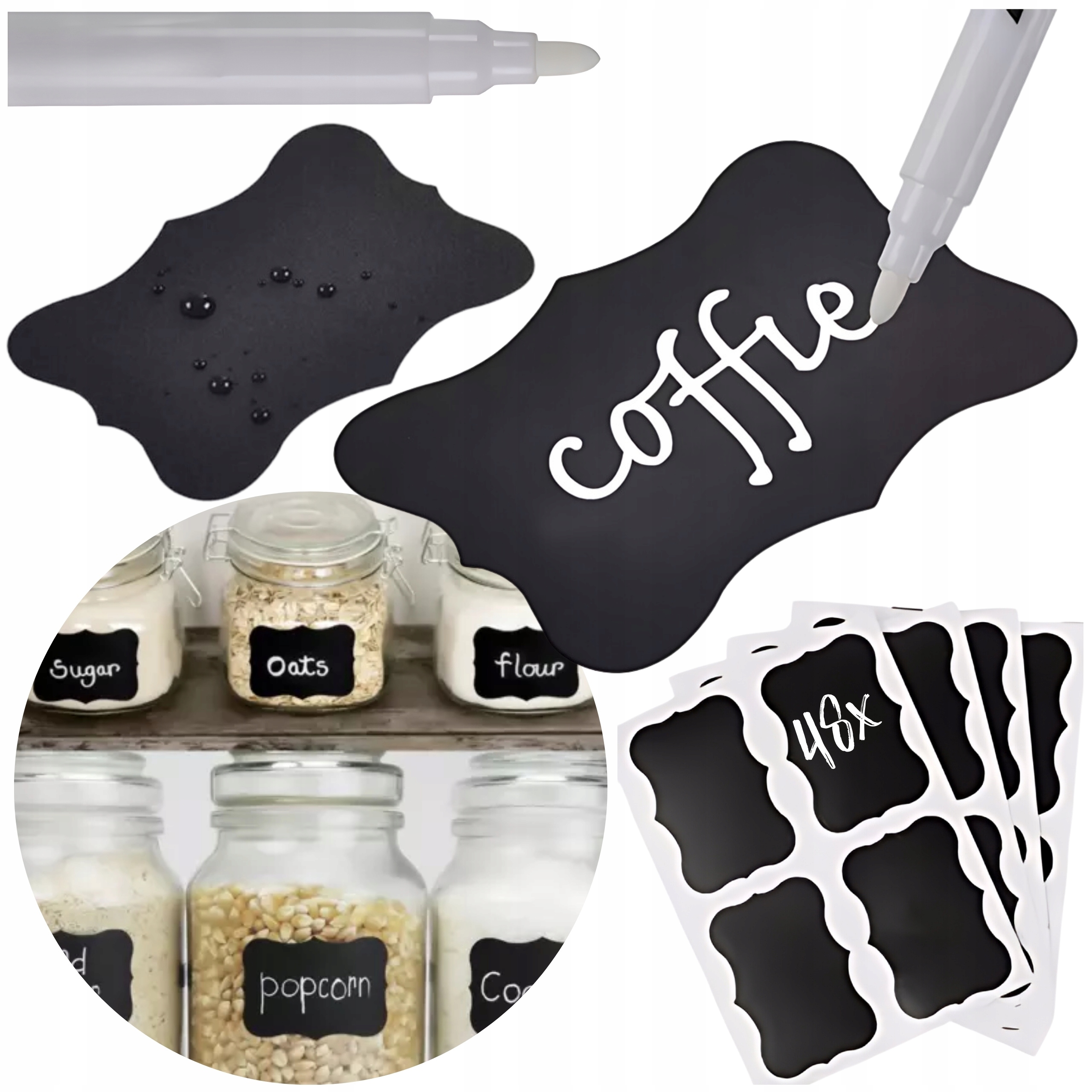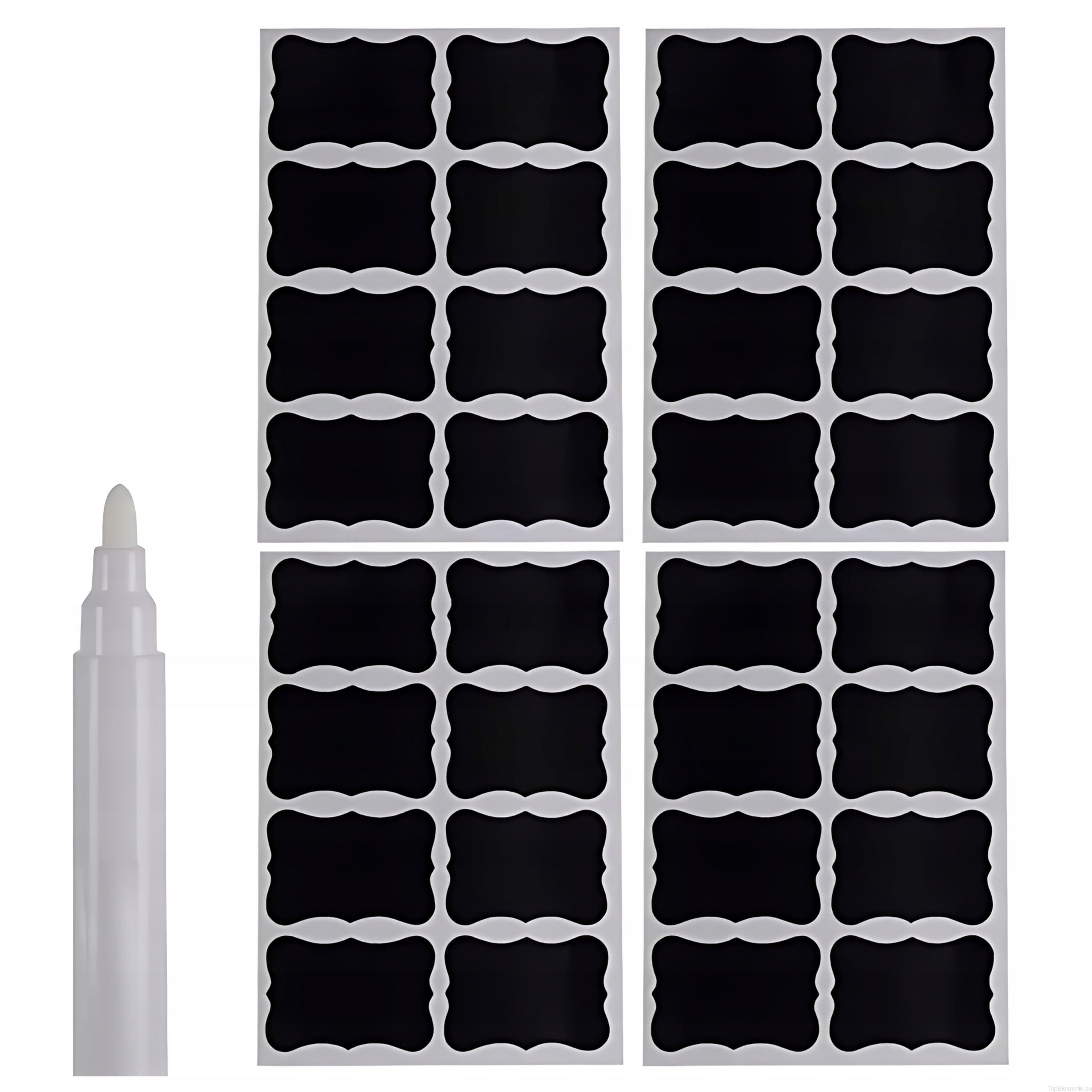 Do każdego zestawu dołączamy biały pisak, który idealnie komponuje się z czarnymi naklejkami.