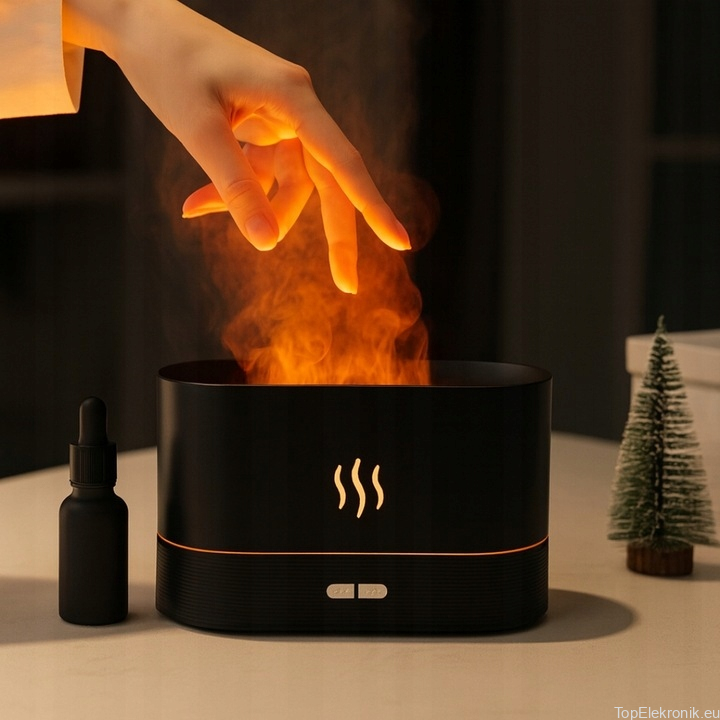 Elegancki, kompaktowy kominek-nawilżacz, który łączy relaksujący efekt płomienia z funkcją nawilżania i dyfuzji zapachów. Subtelna, równomierna mgiełka poprawia komfort w pomieszczeniu, a delikatne podświetlenie tworzy przytulny nastrój – idealny do domu, biura i na prezent.