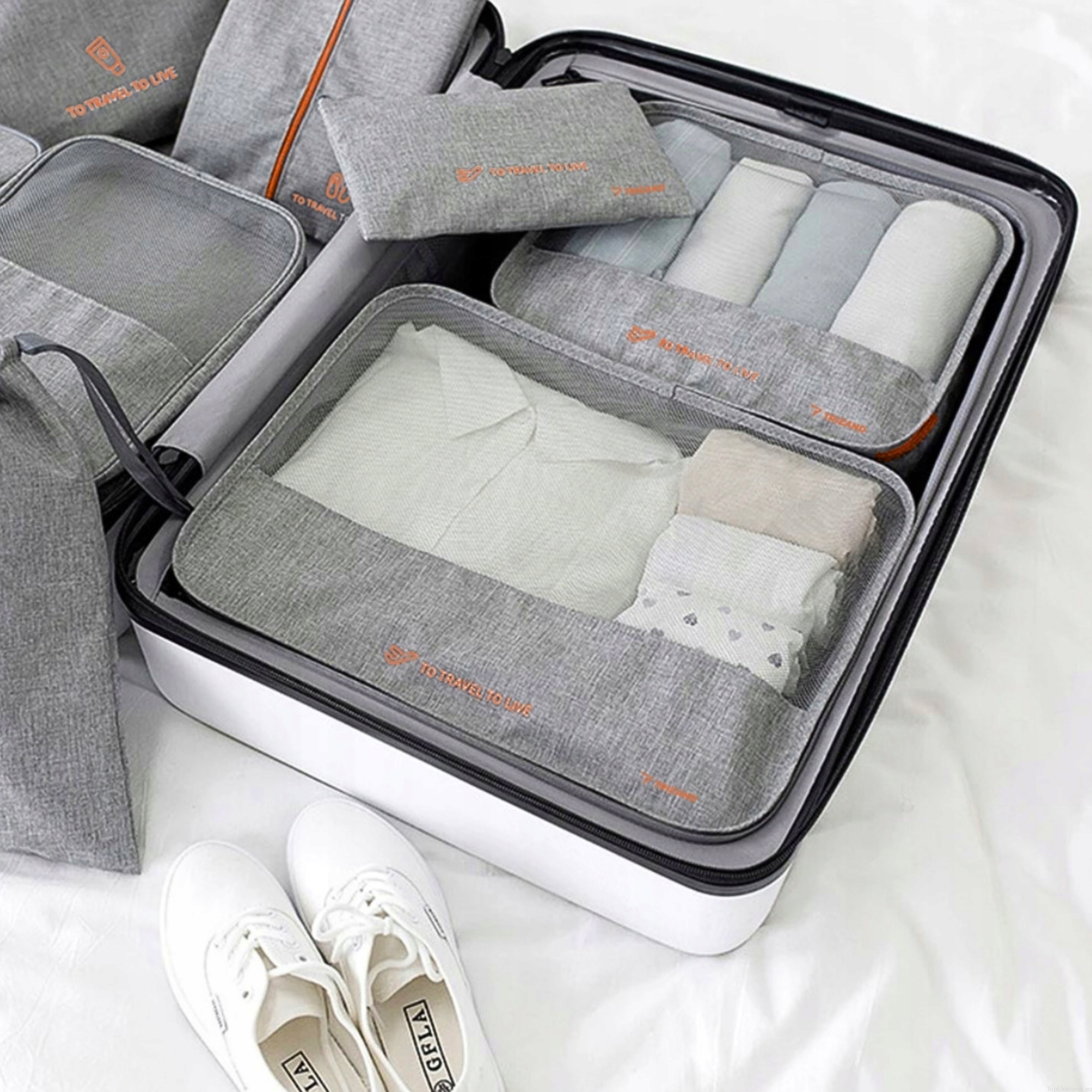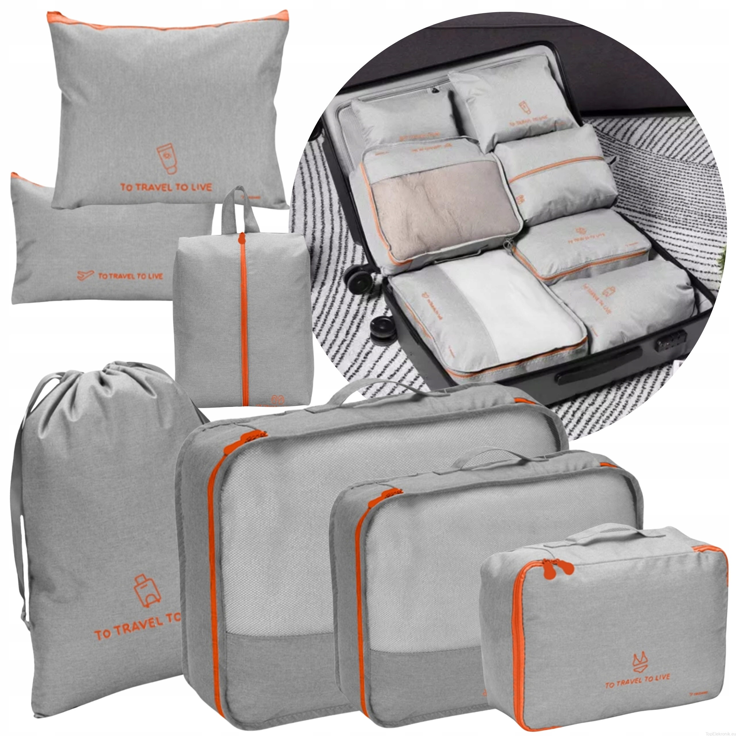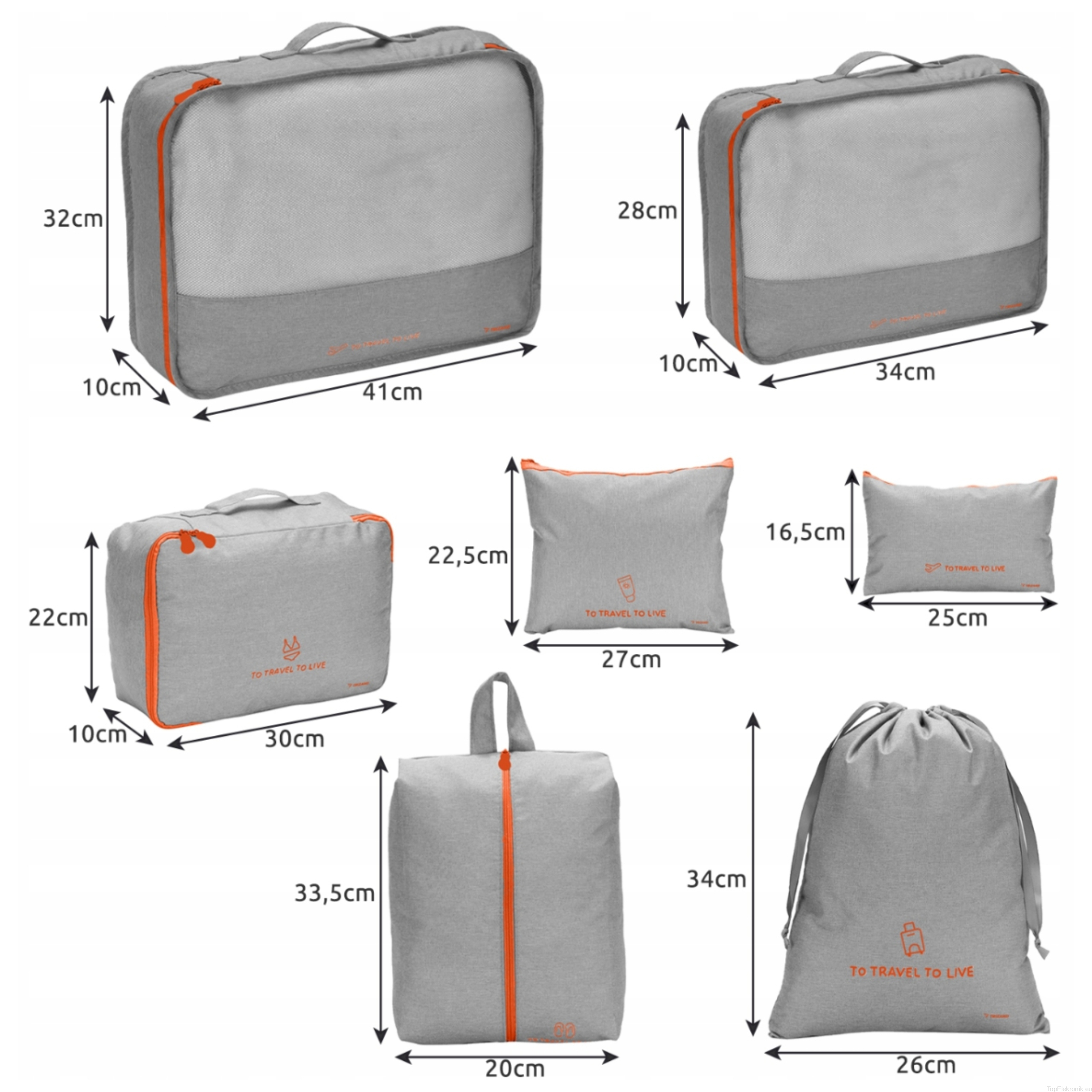 Zestaw składa się z 7 toreb o różnej wielkości i pojemności, które ułatwiają utrzymanie porządku podczas podróży.