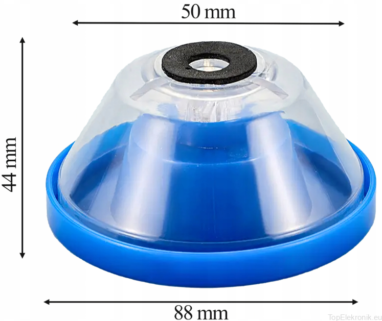 Wymiary: podstawa – 88 mm, wysokość – 44 mm, szczyt – 50 mm