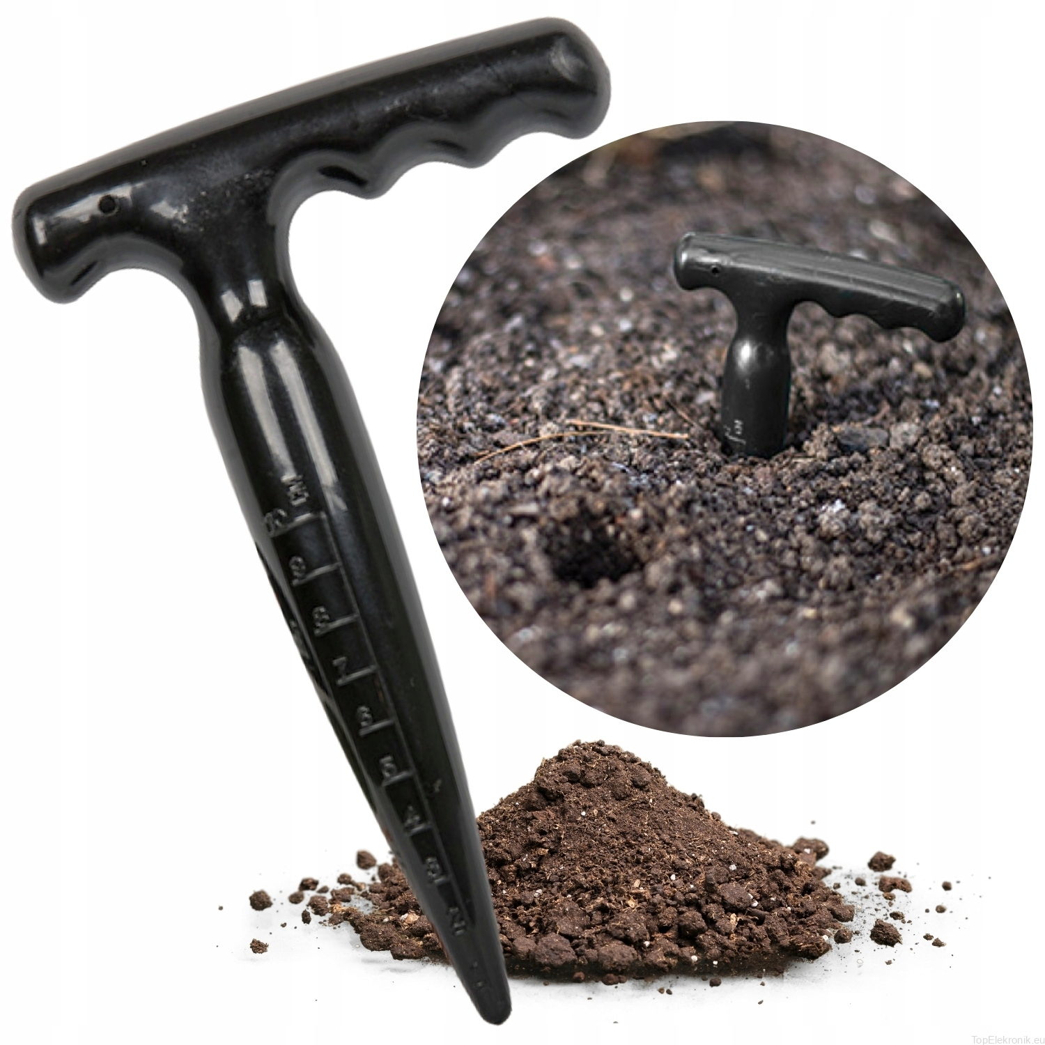✅ Miarka głębokości: Na boku pikownika znajduje się miarka umożliwiająca precyzyjne określenie głębokości sadzenia (zakres do 10 cm).