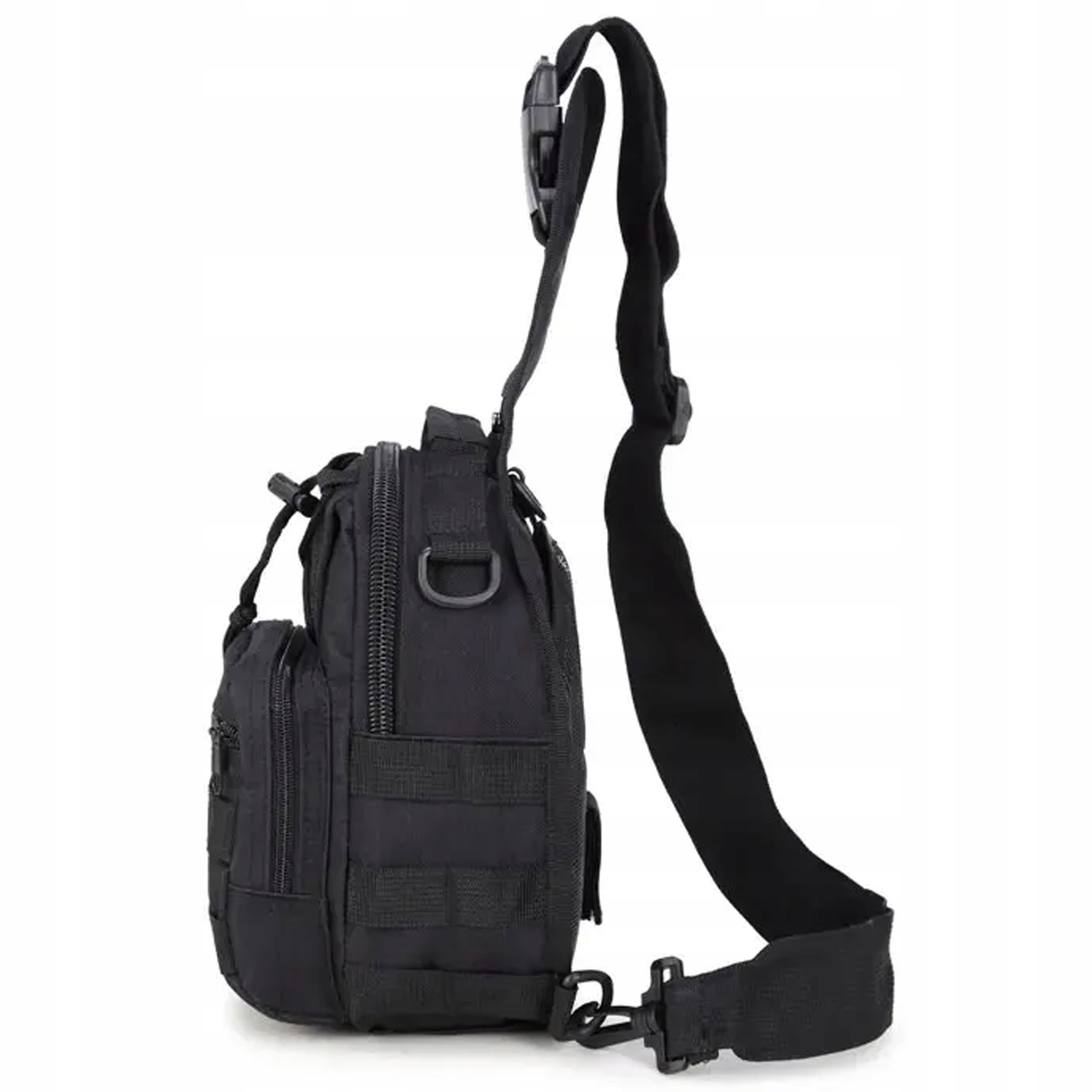✨ Szelki do noszenia plecaka na ramieniu.Jest to szeroki pas z regulacją długości, przypinany do naramiennika solidną klamrą umożliwiającą szybkie wypięcie. Dolne mocowanie zapewnia obrotowy karabińczyk zapinany na jednym z D-ringów, co pozwala nosić plecak na dowolnym ramieniu. W naramienniku od strony wewnętrznej znajduje się niewielka płaska kieszeń.