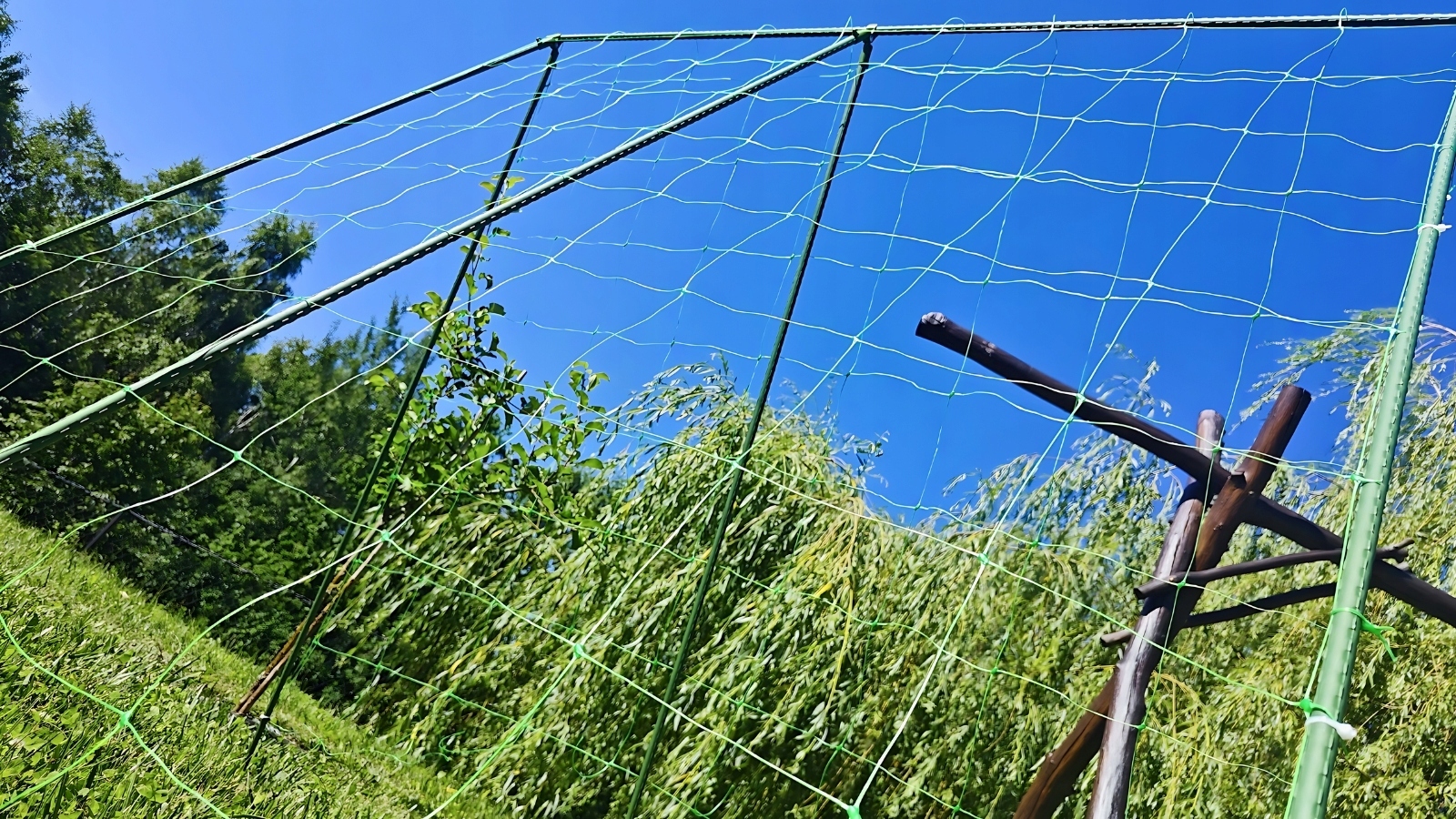 Pędy roślin pnących rosnących na siatce są lepiej chronione przed wiatrem, co zmniejsza ryzyko ich uszkodzenia