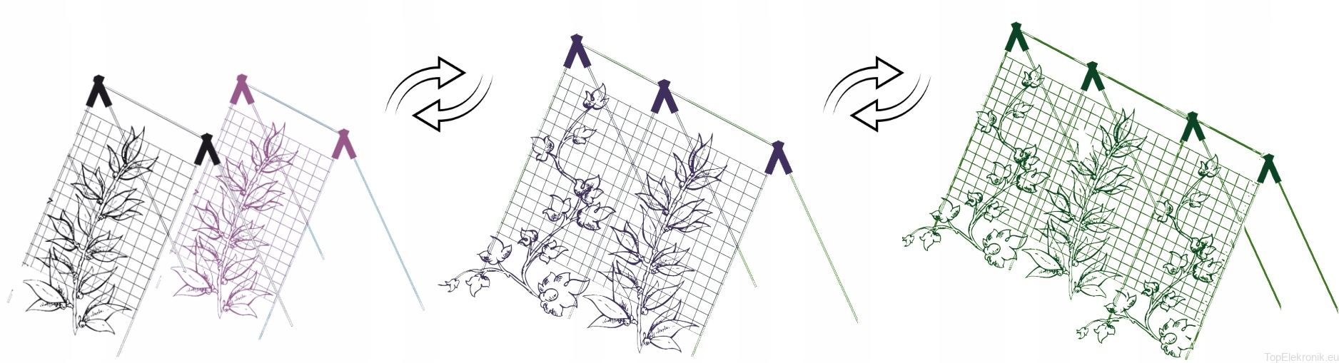 ✅ Poprawa dostępu do światła słonecznego: Dzięki równomiernemu rozłożeniu pędów na siatce, liście roślin otrzymują więcej światła słonecznego, co przyczynia się do lepszej fotosyntezy, wzrostu i kwitnienia.