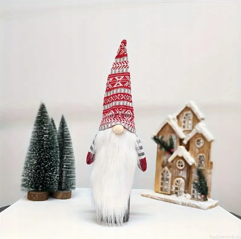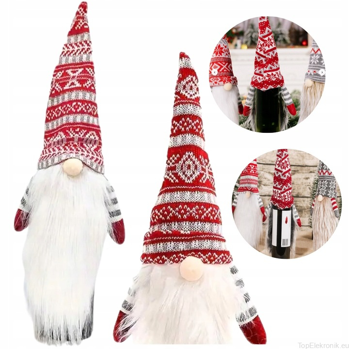 Ten uroczy skrzat na butelkę to idealny dodatek świąteczny do każdego domu. Jego czerwono-białe ubranie w tradycyjne wzory nawiązuje do zimowej atmosfery, a długa, puszysta broda dodaje mu charakteru. Czapka skrzata, rozciągająca się ku górze, jest ozdobiona delikatnymi, śnieżnobiałymi wzorami, które przypominają płatki śniegu. Różowe małe nosek dopełniaja całość, nadając mu sympatyczny i ciepły wygląd. Ten skrzat na pewno doda uroku każdej butelce, na którą zostanie założony, sprawiając, że będzie wyglądać jak prawdziwy prezent świąteczny!