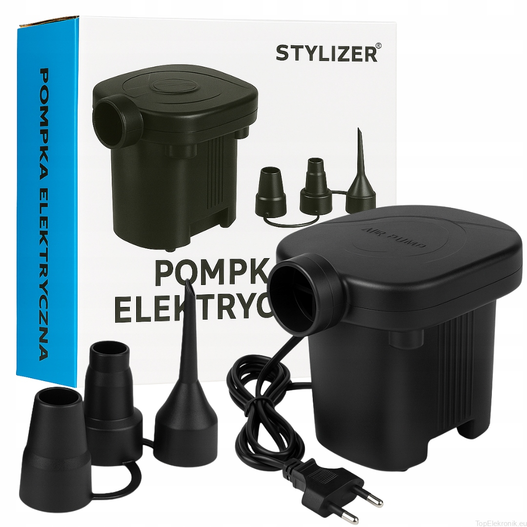Nowoczesna pompka elektryczna marki STYLIZER to praktyczne urządzenie, które pozwoli Ci szybko i bez wysiłku napompować lub wypompować powietrze z materacy, pontonów, basenów oraz innych produktów dmuchanych.