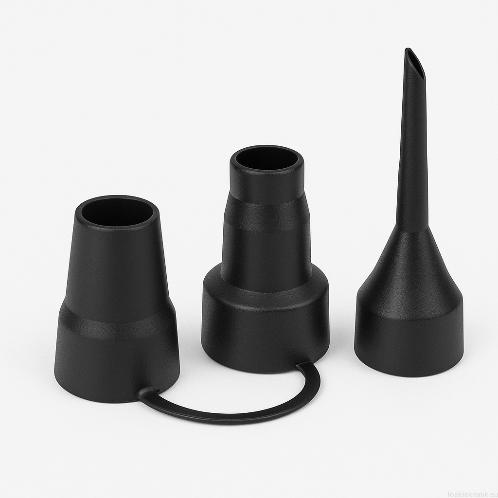 Trzy końcówki o średnicach 6 mm, 17 mm i 23 mm – pasują do większości zaworów.