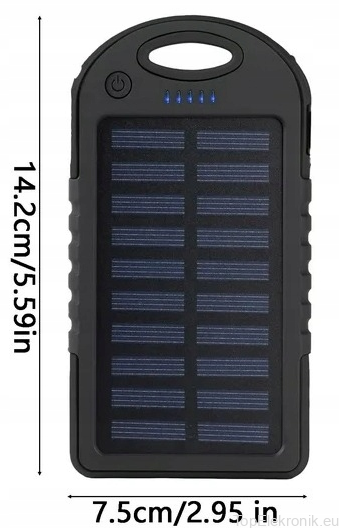 Ten power bank z panelem słonecznym może ładować urządzenia w sposób ciągły w warunkach nasłonecznienia.