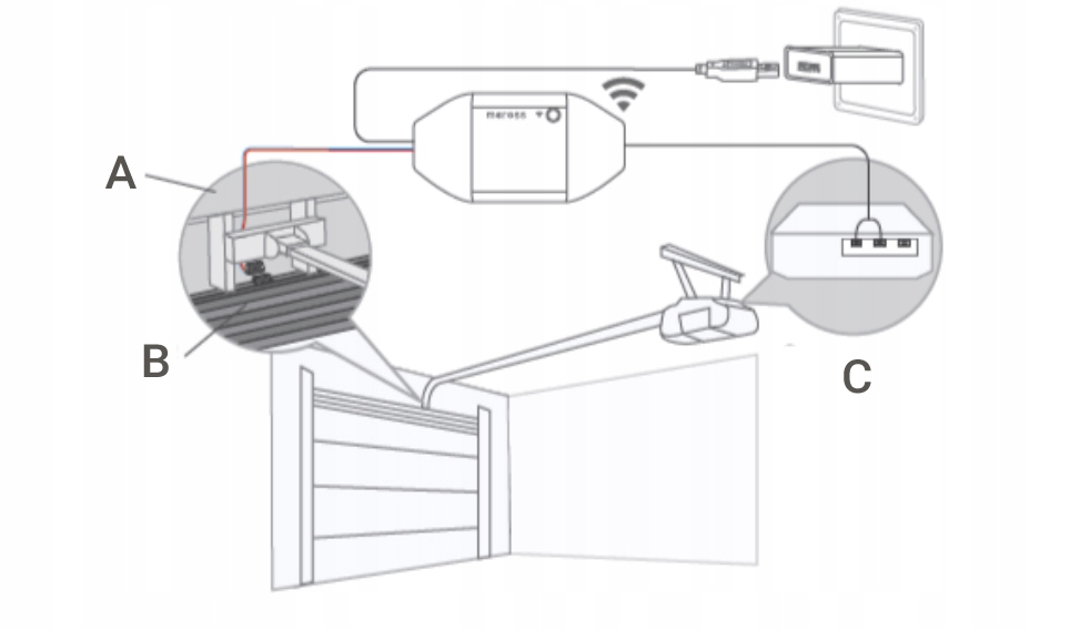 Zestaw pozwalający na zdalne otwieranie i zamykanie bramy garażowej w oparciu o komunikację WiFi oraz aplikację Meross lub HomeKit DOM