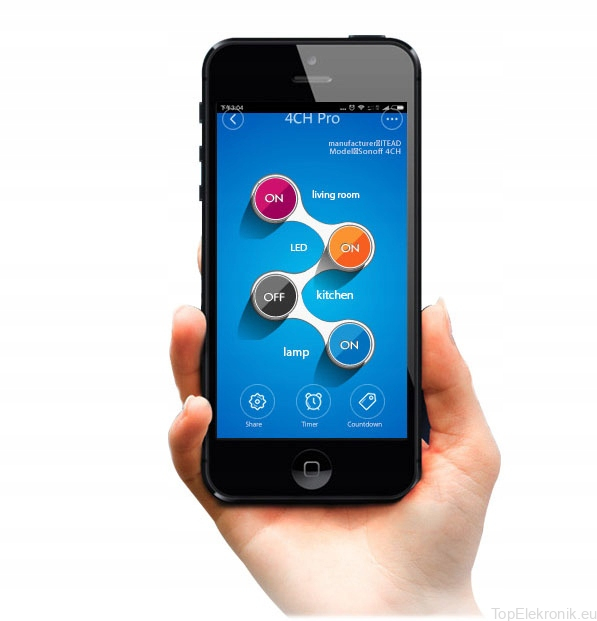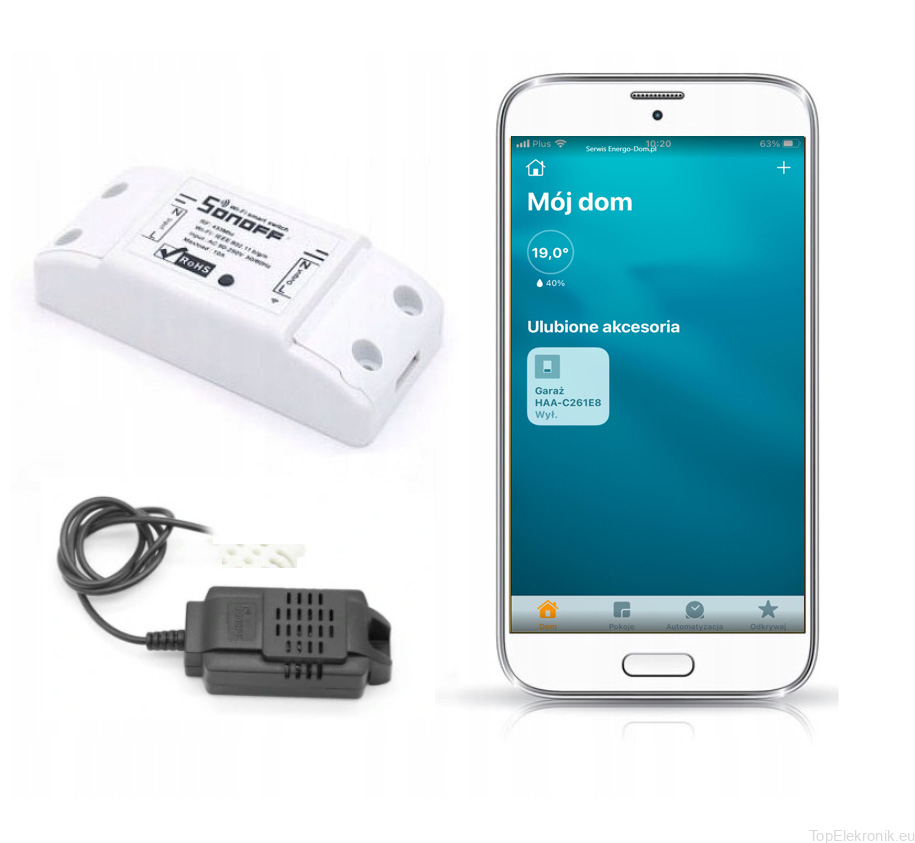 Przełącznik sterowany przy pomocy sieci WiFi / zdalnie przez Internet - aplikację mobilną HomeKit Apple lub EVE.