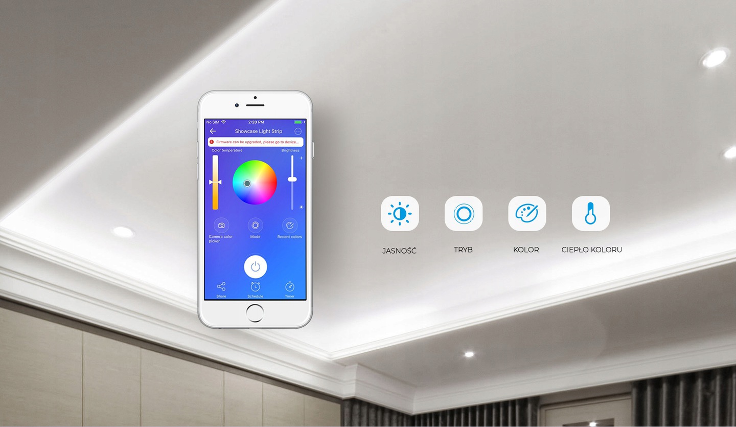 Po skierowaniu aparatu smartfona na dowolny przedmiot, możesz dopasować barwę taśmy do otoczenia. Pozwala to na jeszcze większe poszerzenie palety kolorów i doskonałe dopasowanie oświetlenia do Twoich pomieszczeń.