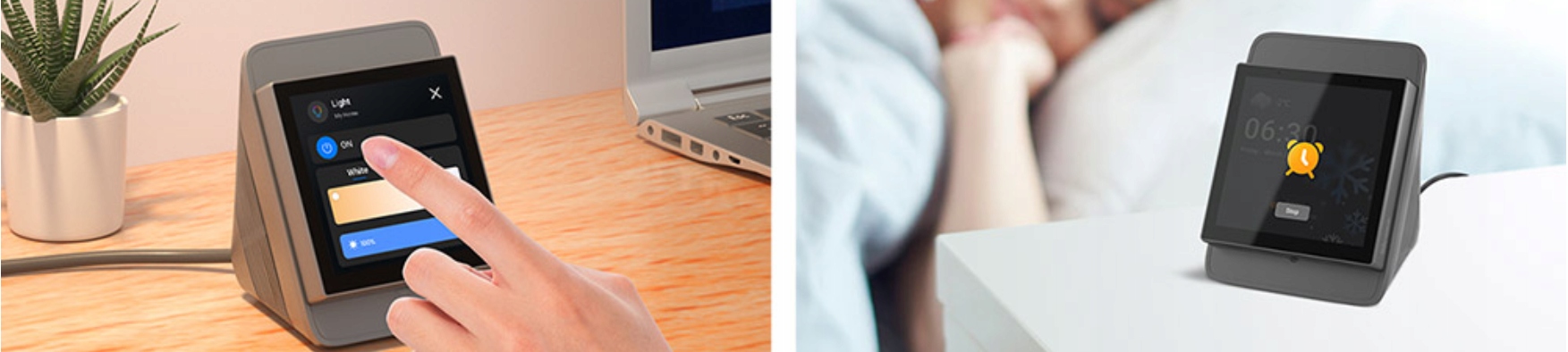 Nawet działając jako zegar, termostat lub monitor kamery. Przyciemniona szarość i biel są opcjonalne.