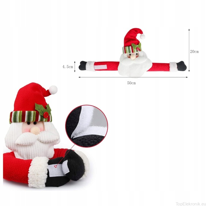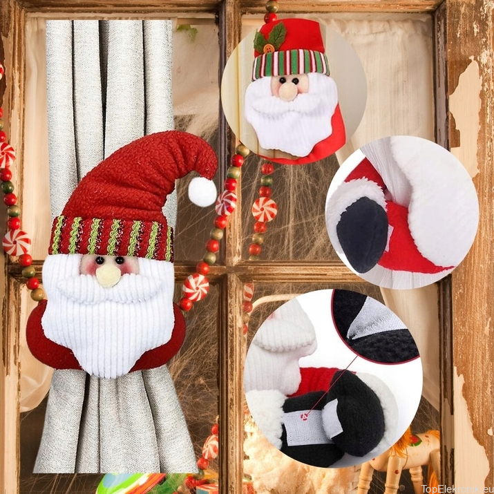 Klamra z motywem Świętego Mikołaja jest wyposażona w mocne zapięcia na rzep, co umożliwia szybkie i pewne przypięcie do zasłon.