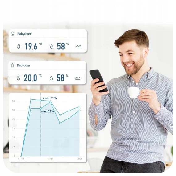 Doskonałe rozwiązanie dla osób, które cenią sobie kontrolę nad warunkami panującymi w ich domu. Dzięki trzem czujnikom o dużym zasięgu oraz zdalnemu sterowaniu z aplikacji Tuya Smart, użytkownicy mogą monitorować temperaturę i wilgotność w różnych pomieszczeniach, nawet w piwnicy czy terrarium.