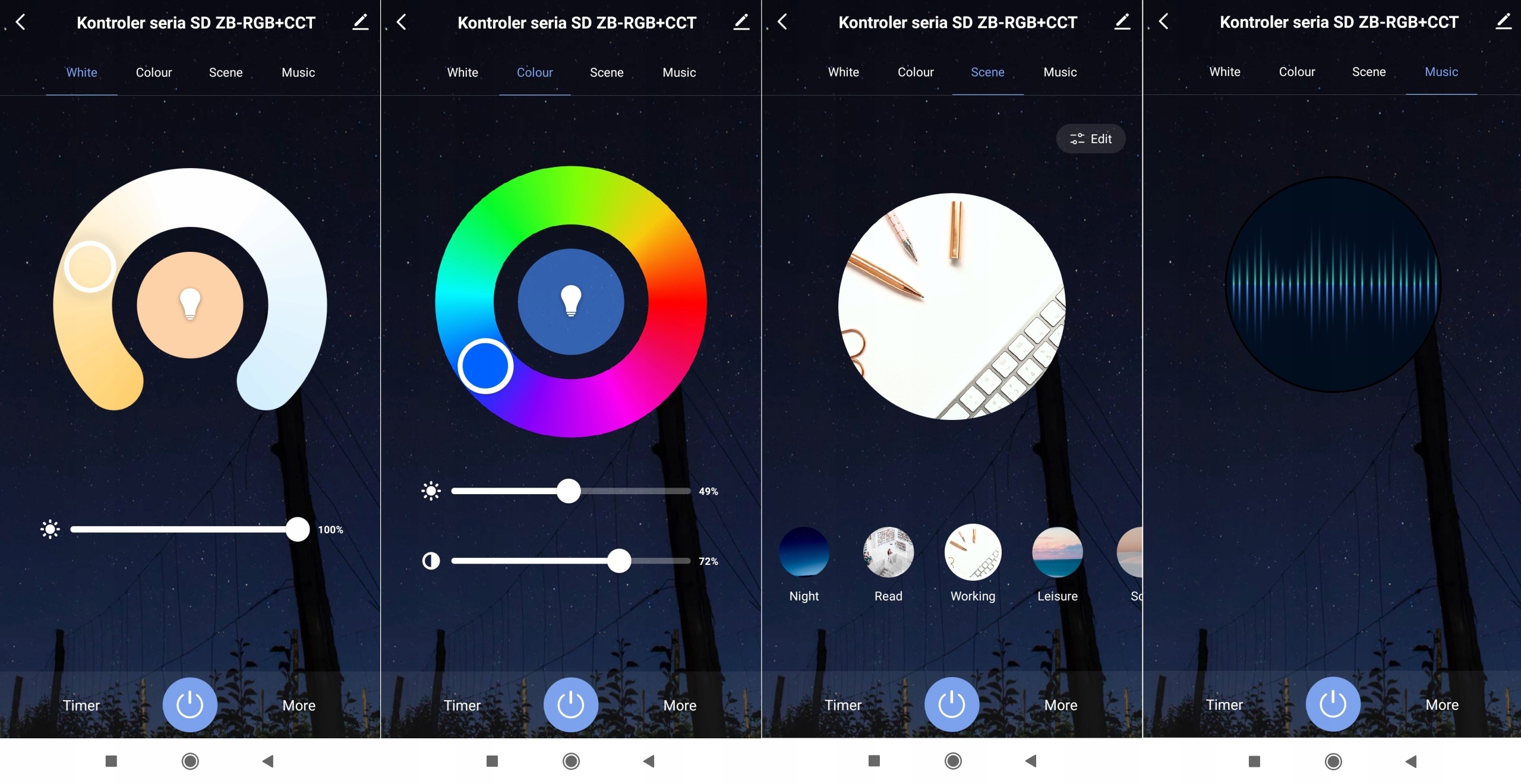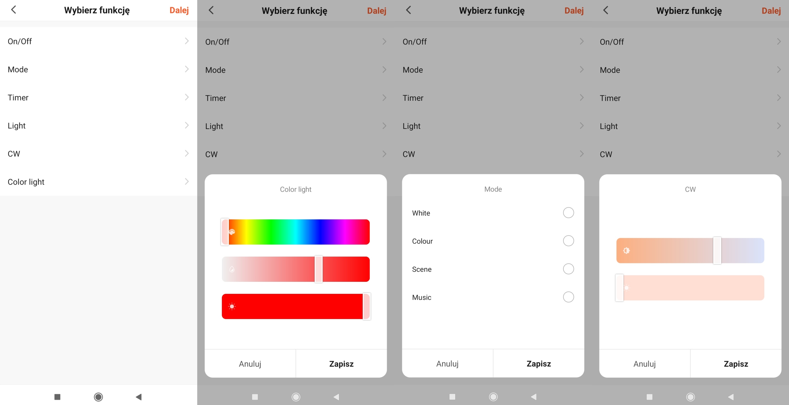 Można jednocześnie ustawić barwę, jasność czy kolor we wszystkich zainstalowanych żarówkach jednym ruchem palca.