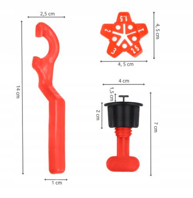 Zestaw idealnie nadaje się do poziomowania płytek, glazury oraz kafli o grubości od 3 do 16 mm.