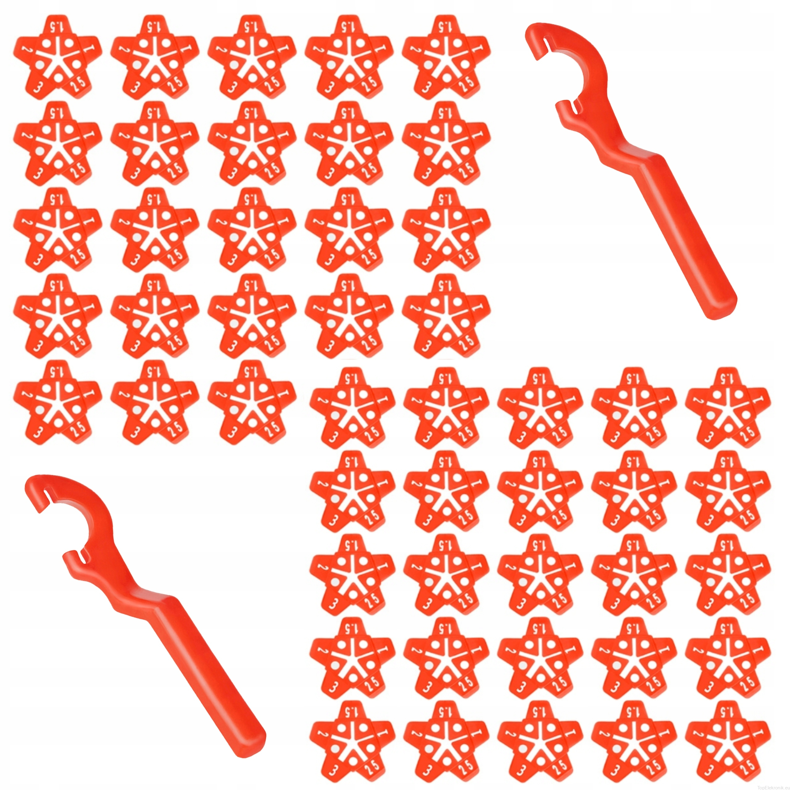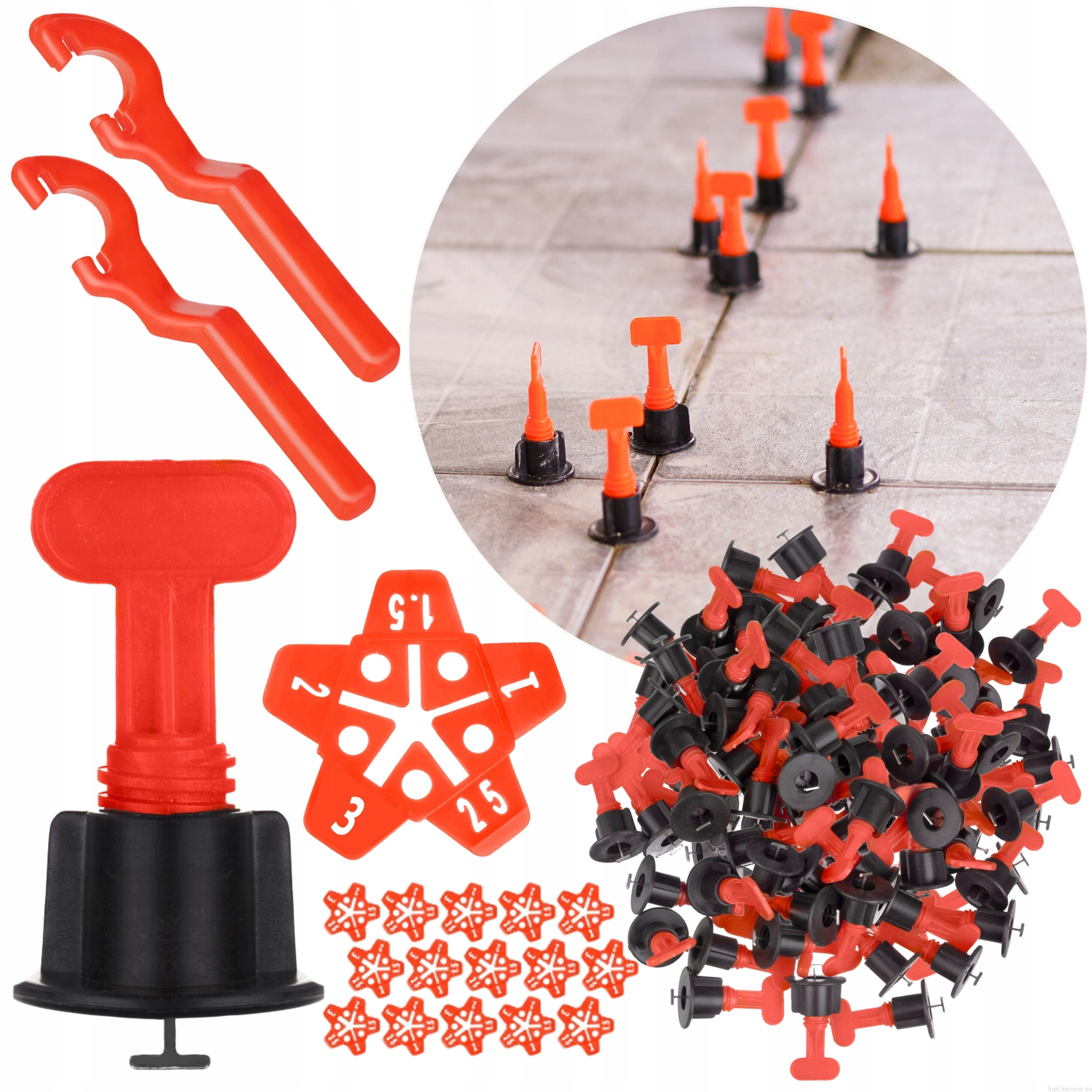 Zestaw zawiera aż 100 klipsów i 50 gwiazdek (krzyżaków), co pozwala na swobodną pracę przez cały dzień bez potrzeby przerw. Gwiazdki umożliwiają precyzyjne dostosowanie przerwy między płytkami na 1, 1.5, 2, 2.5 lub 3 mm, co jeszcze bardziej zwiększa funkcjonalność