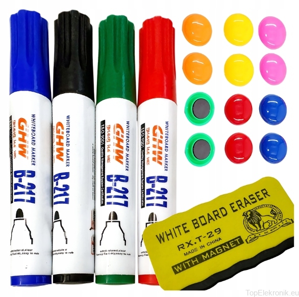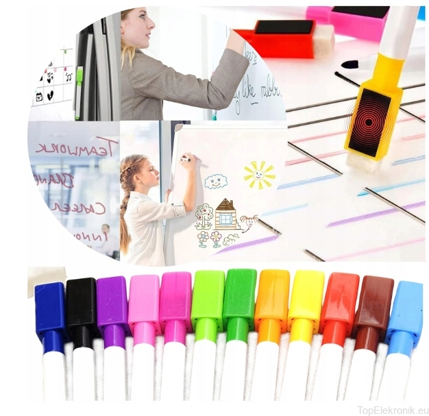 Nasza tablica suchościeralna jest dostarczana z kompletem niezbędnych akcesoriów, takich jak: